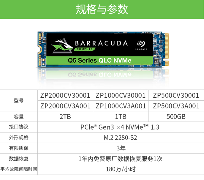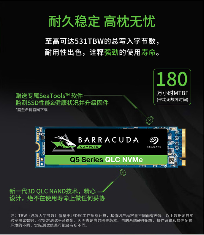 希捷(SEAGATE) SSD固态硬盘 酷鱼Q5 M.2接口 NVMe 笔记本台式机电脑经济高速扩容
