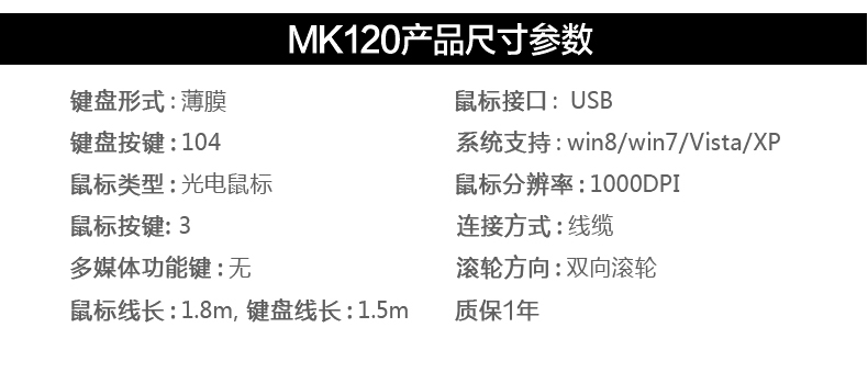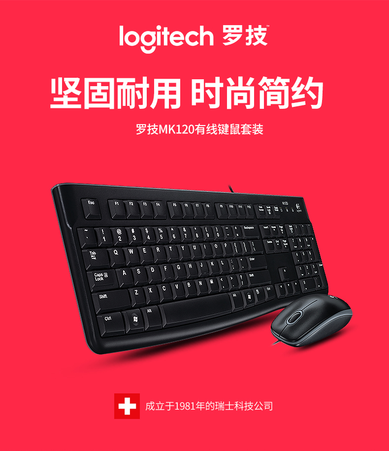 罗技MK120 键鼠套装 有线键鼠套装 办公键鼠套装 电脑键盘 笔记本键盘