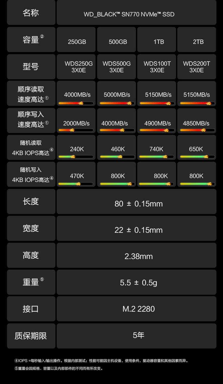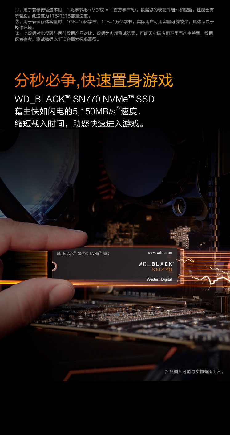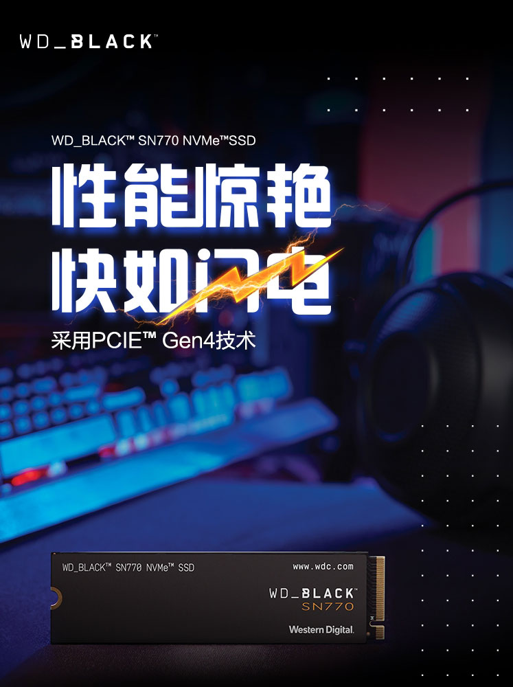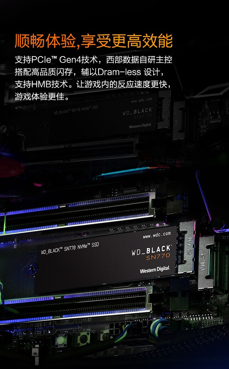 西部数据(Western Digital)SSD固态硬盘 M.2接口(PCIe 4.0 x4)WD_BLACK SN770 NVMe SSD游戏高性能版
