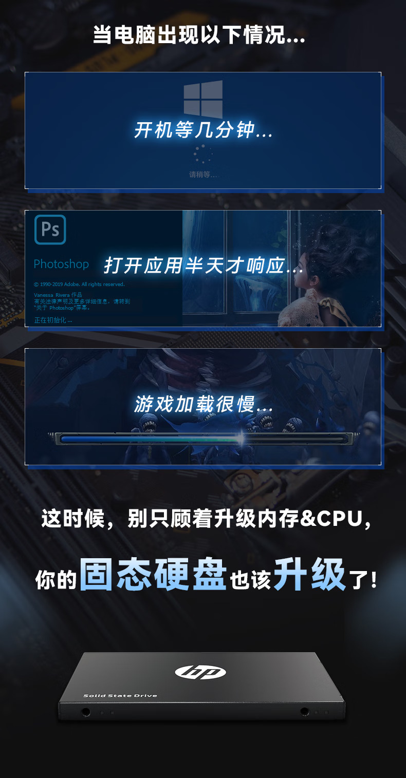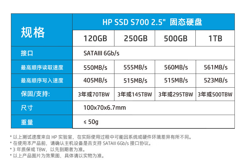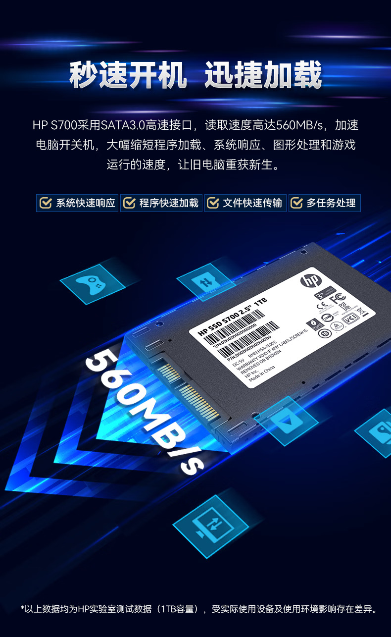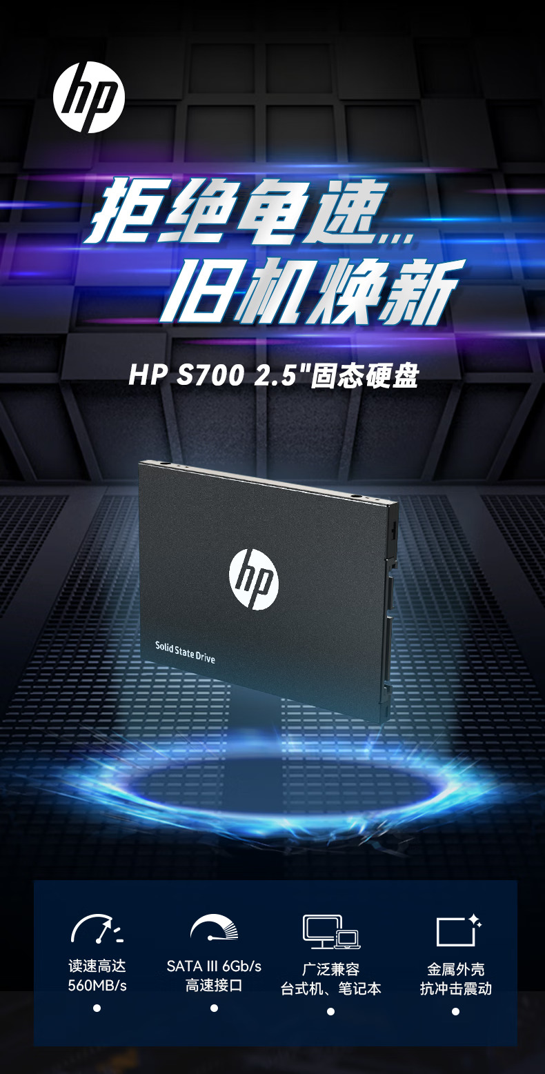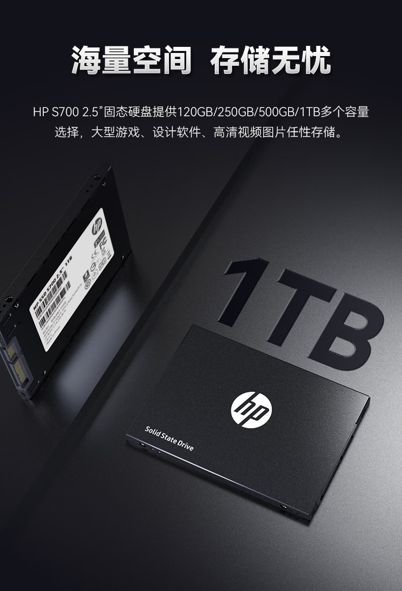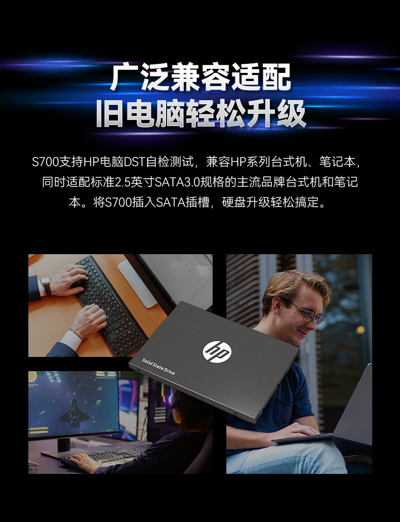 惠普(hp)S700系列 SSD固态硬盘 SATA3.0 接口 2.5英寸 台式机笔记本电脑升级扩容
