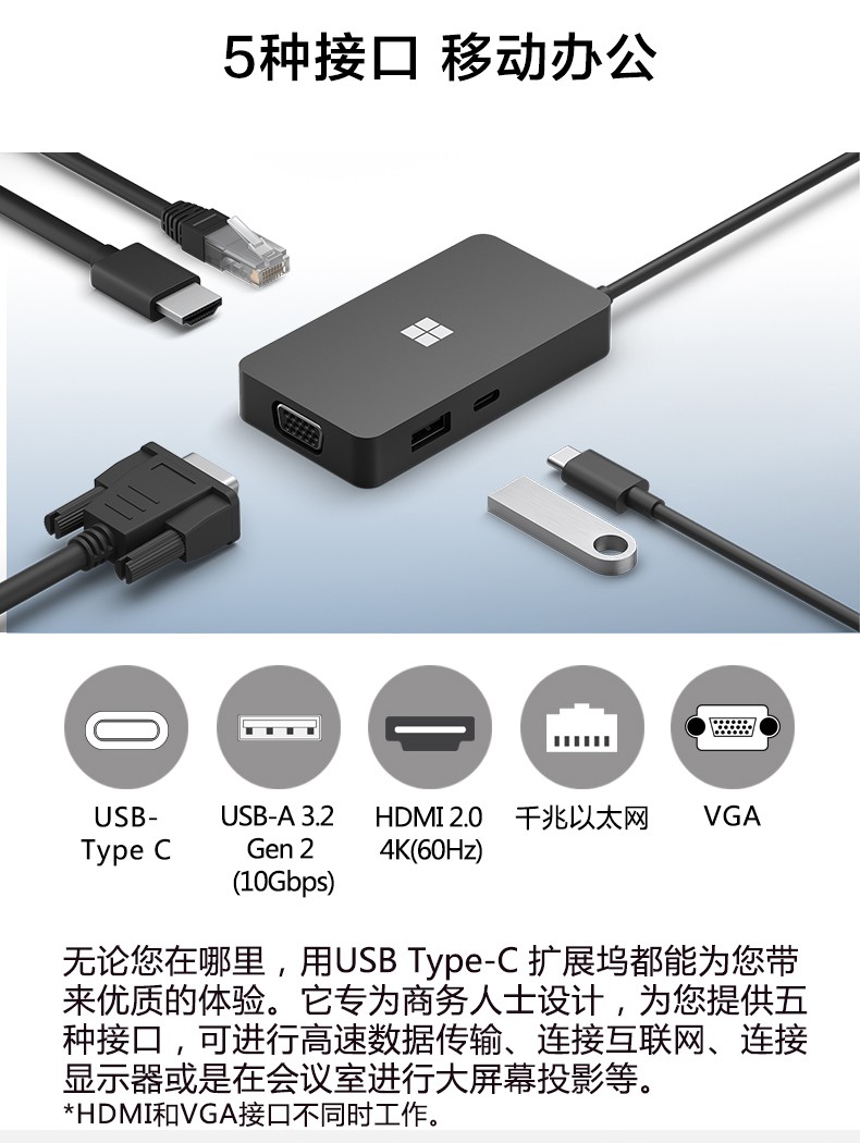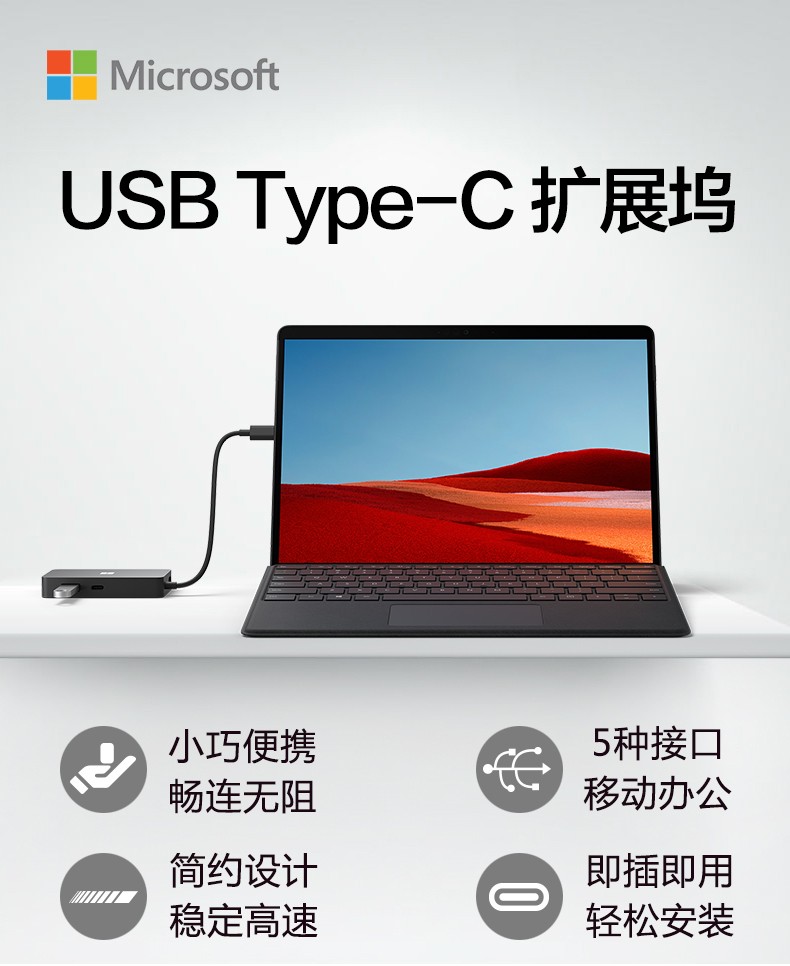 微软/Microsoft USB Type-C便携拓展坞 Pro8 Book3 Go3 Laptop4 外置显卡