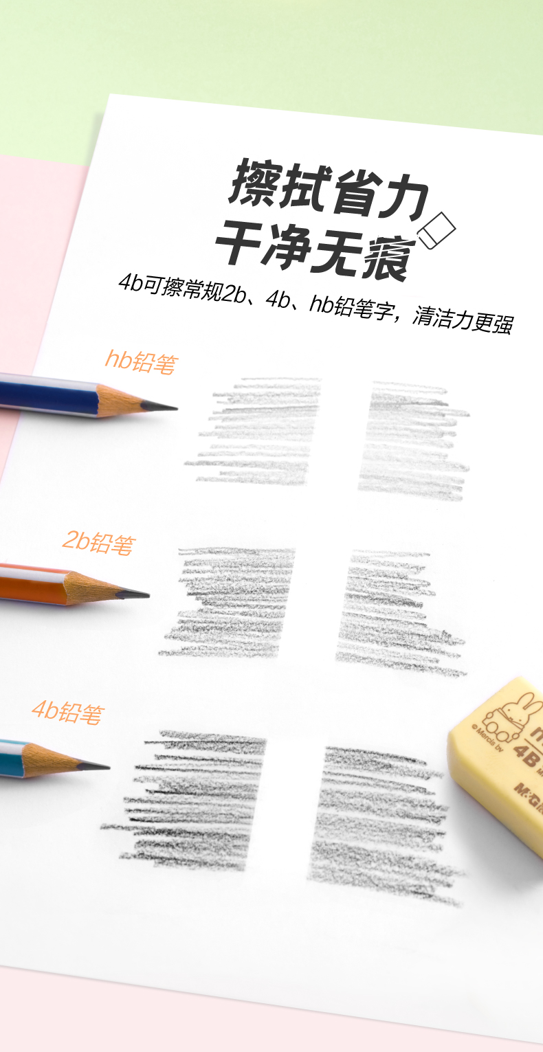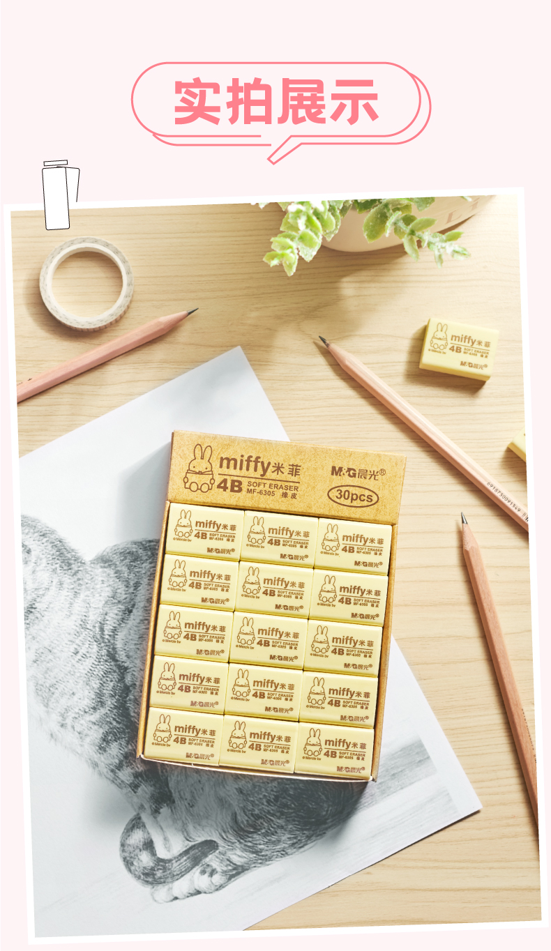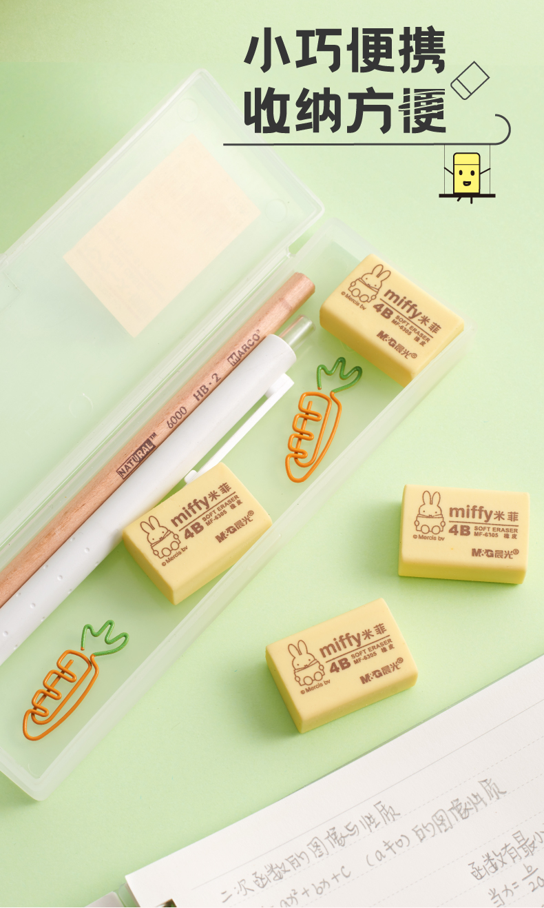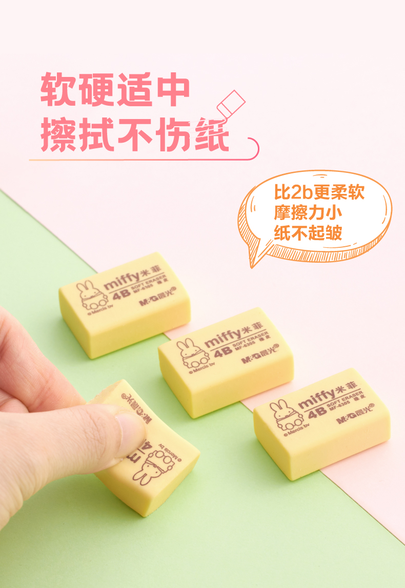 晨光(M&G)MF6305米菲4B橡皮擦学生专用考试铅笔不留痕卡通美术素描无碎屑创意可爱儿童无毒铅笔像皮擦文具学生用品 橡皮5块
