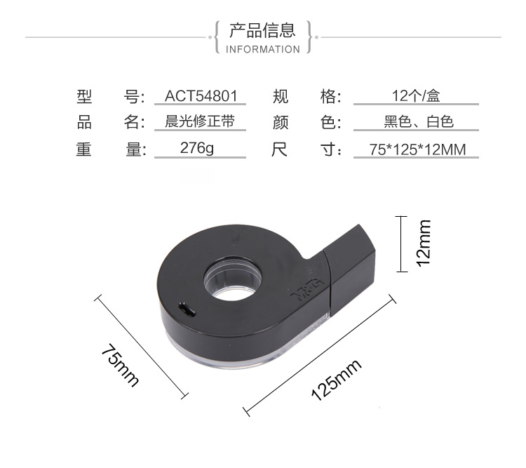 晨光(M&G)ACT54801修正带12个装 12米 改正带 涂改带 改错带 改字带 改错带 改字带 颜色随机 修正带