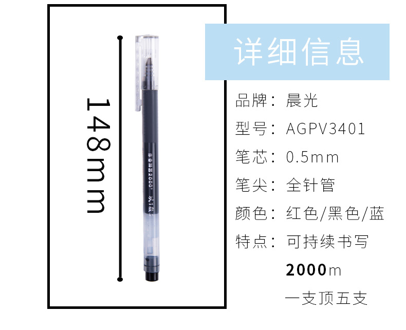 晨光V3401全针管中性笔 0.5mm 黑色 12支/盒 大容量巨能写中性笔 水性笔书写笔 办公签字笔速干水笔 黑色