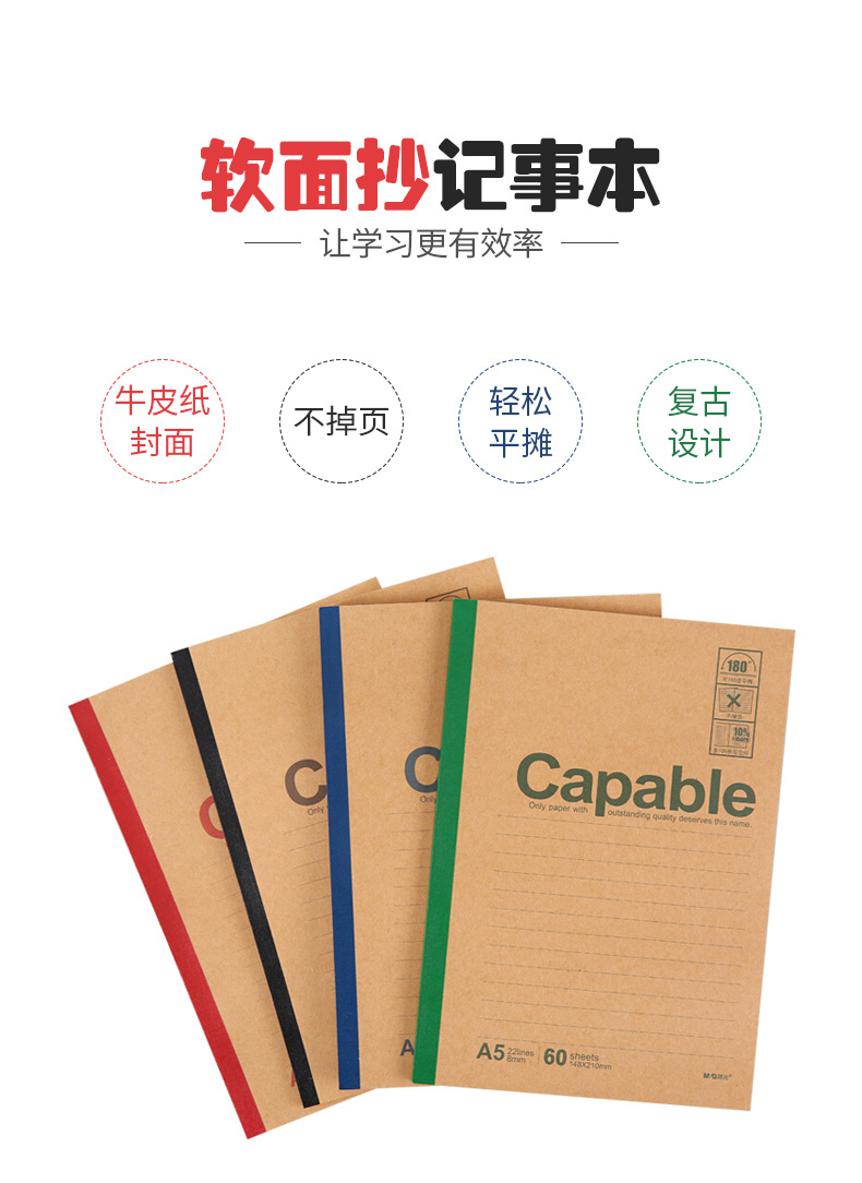 晨光(M&G)APYJS550无线装订本10本 A5/60张软面抄记事本 笔记本 雅致办公系列 笔记本/记事本 混色