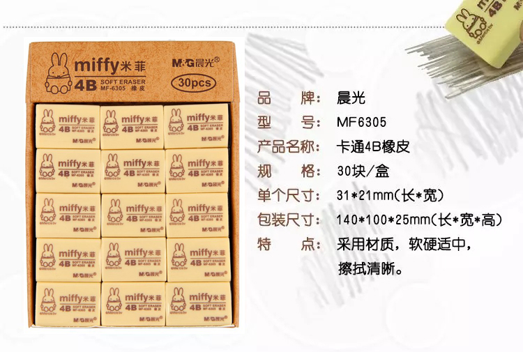 晨光(M&G)MF6305米菲4B橡皮擦 1盒30块装 卡通橡皮擦 橡皮 学生美术橡皮 橡皮章可塑橡皮学习用品 橡皮