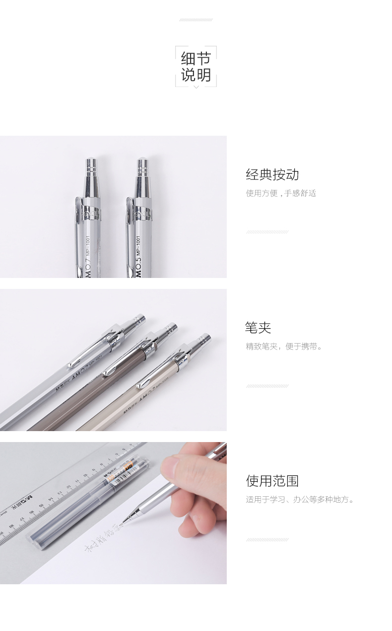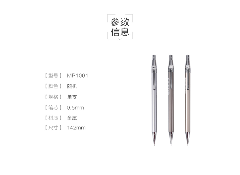 晨光(M&G)MP1001金属铁杆按动铅笔 单支 0.5mm 活动铅笔 自动铅笔绘图笔 写字笔 书写笔 颜色随机 0.5mm