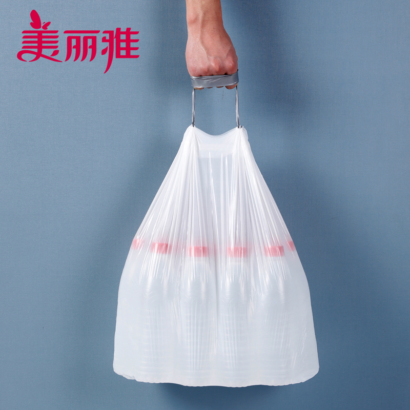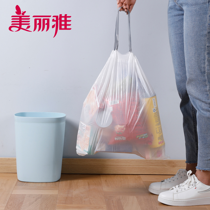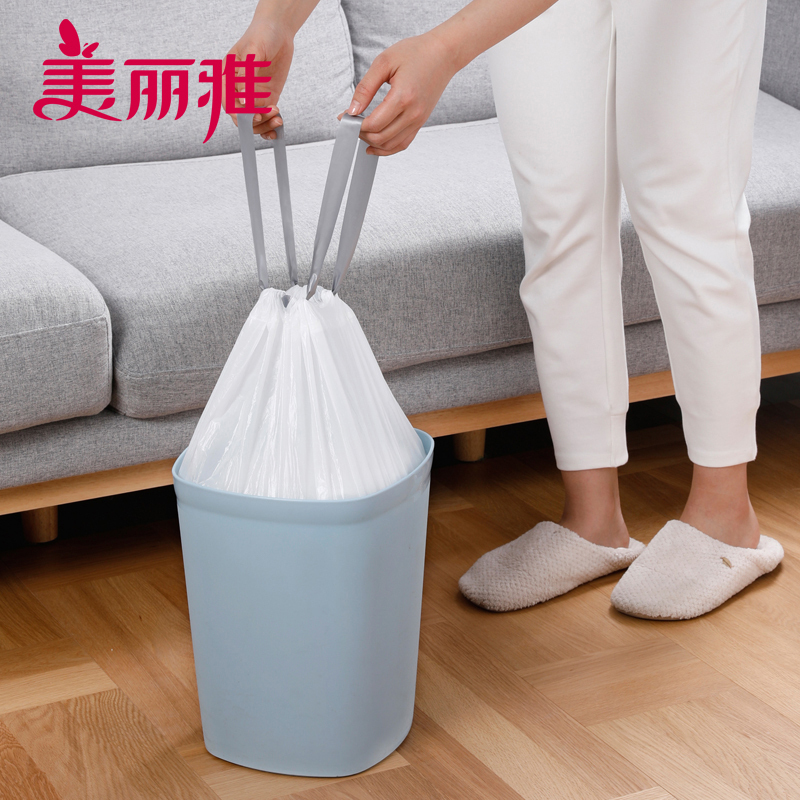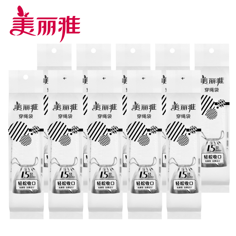 美丽雅 家用垃圾袋厨房卫生间加厚束口免撕穿绳袋50*55CM*15个入(10包入)(白色)