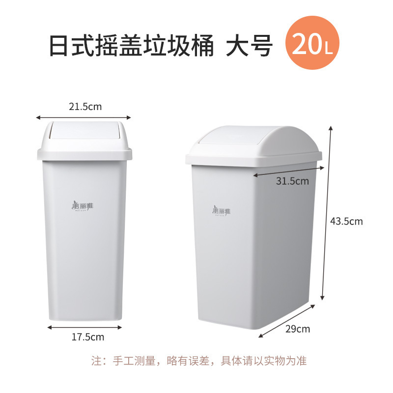 美丽雅 垃圾桶家用厨房卫生间通用简约日式摇盖垃圾桶大容量可闭合双向摇盖垃圾桶 大号20L