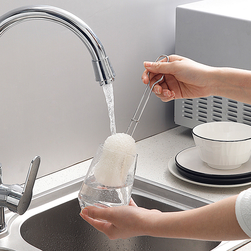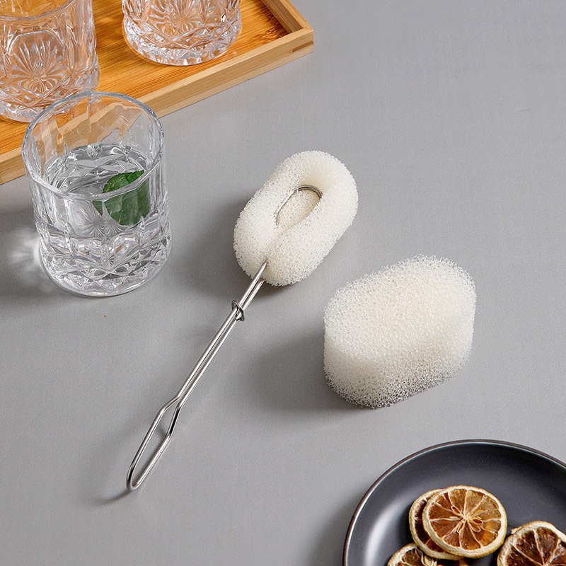 美丽雅 杯刷厨房餐具清洁去茶渍洗杯子不锈钢长柄设计蜂窝海绵不锈钢柄杯刷(赠替换头)