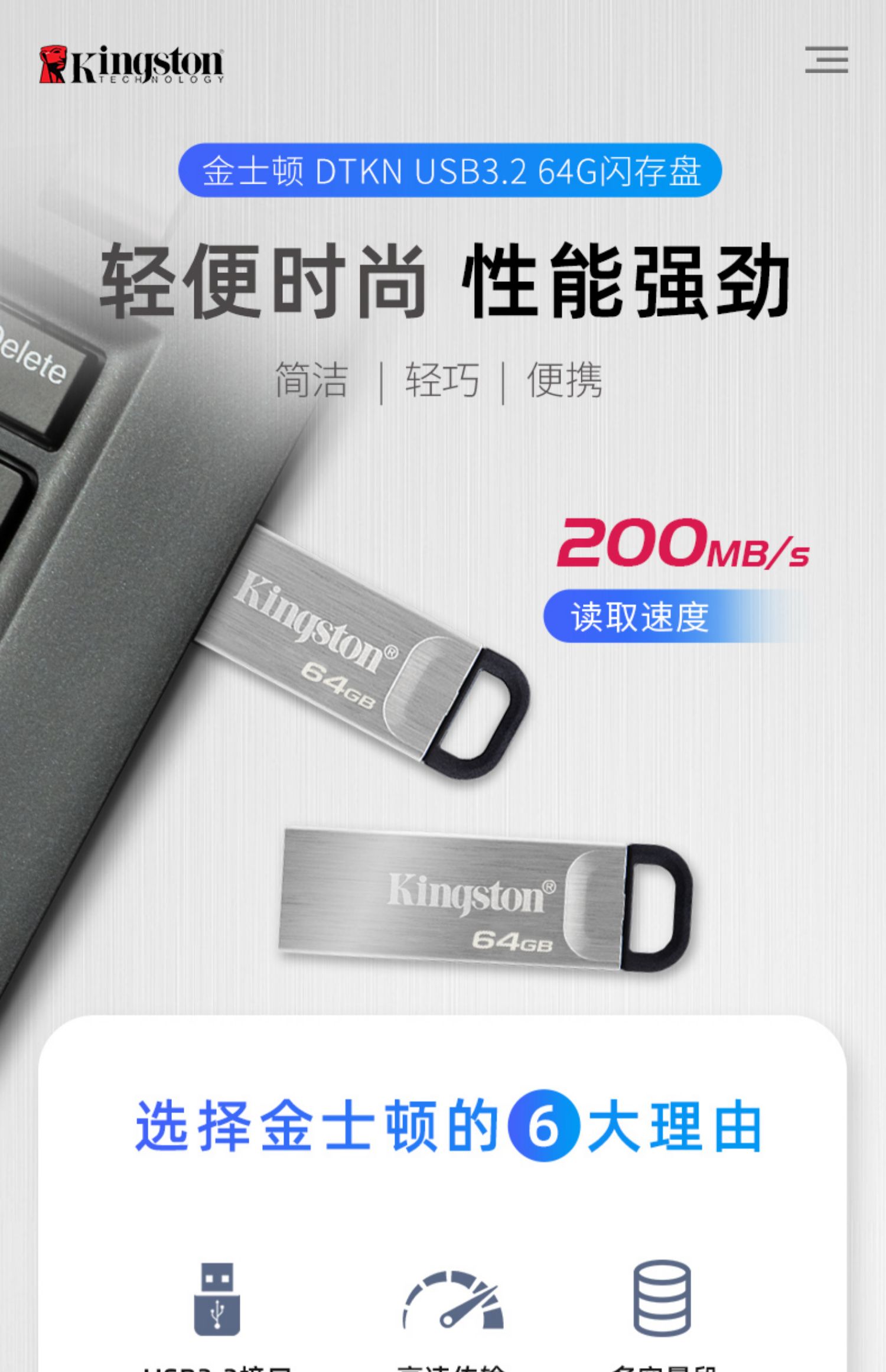金士顿大容量金属U盘64g高速传数据