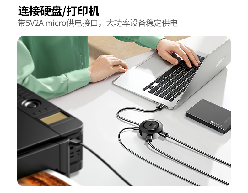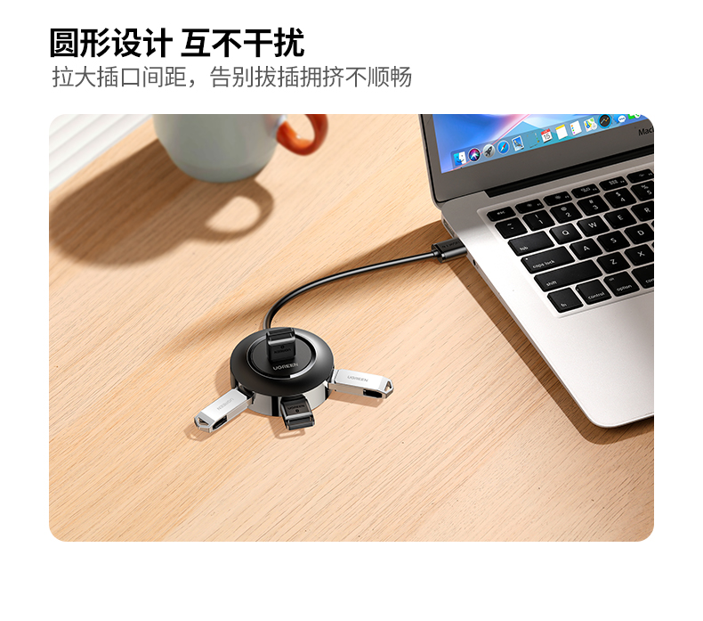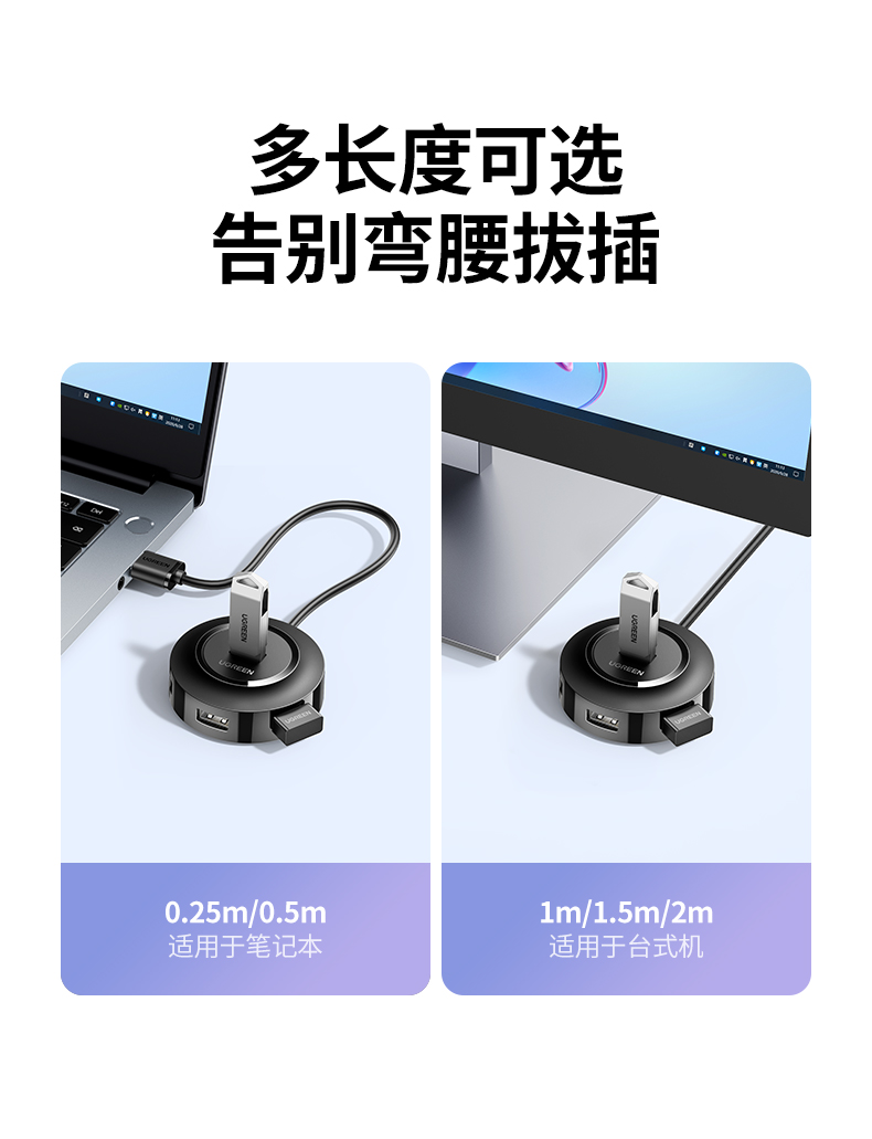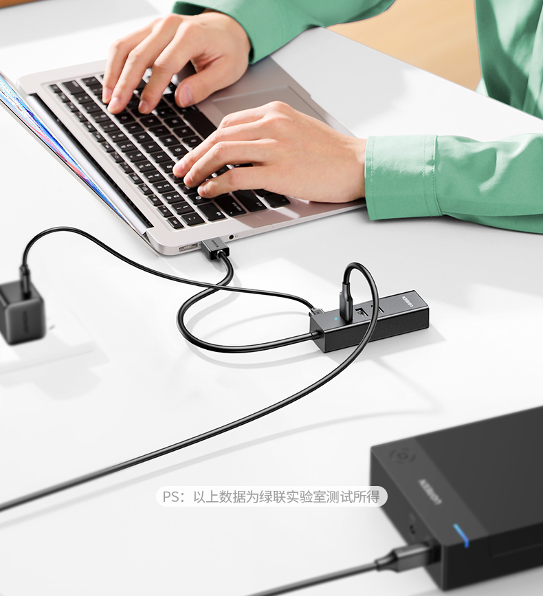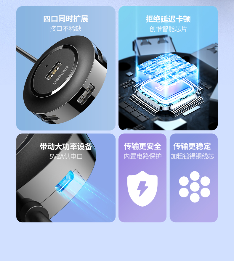 绿联usb扩展器插头多口拓展坞延长线集分线器转换接头typec笔记本电脑多功能ubs外接U盘一拖四usp接口转接hub(1m)