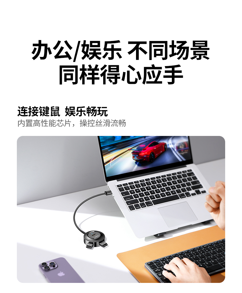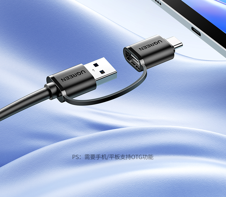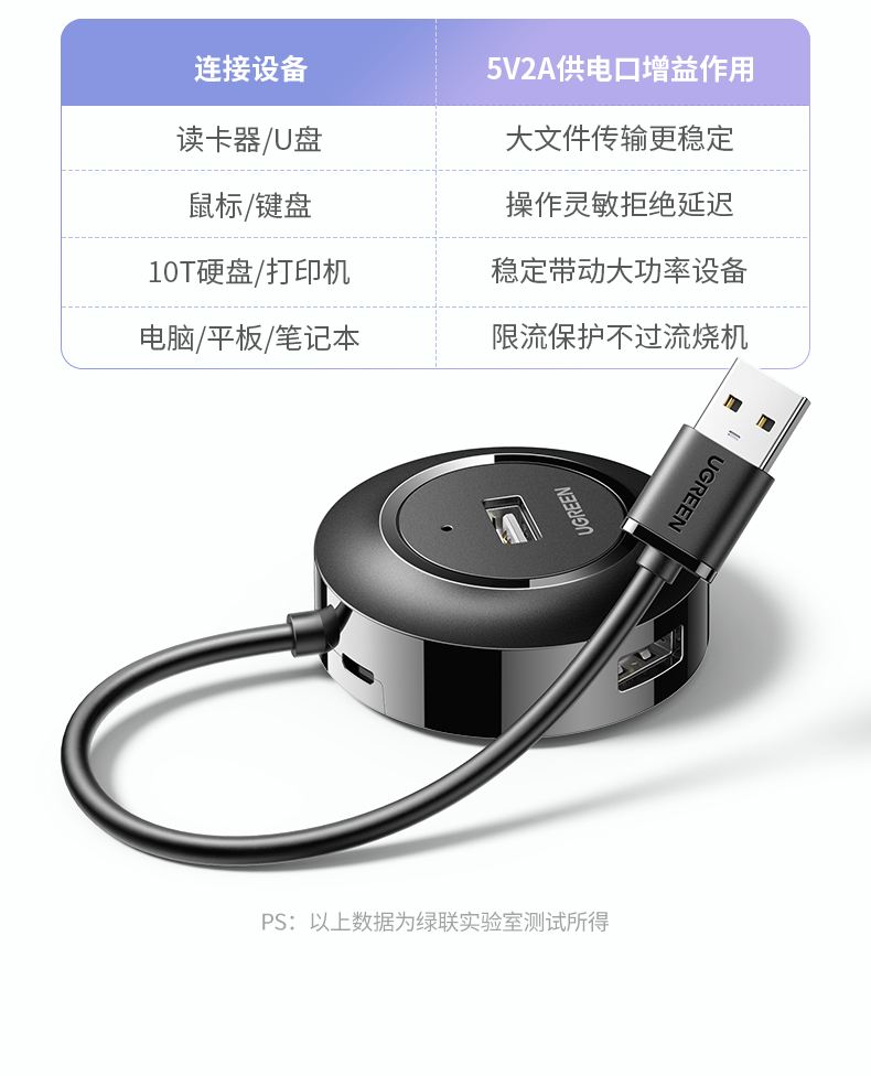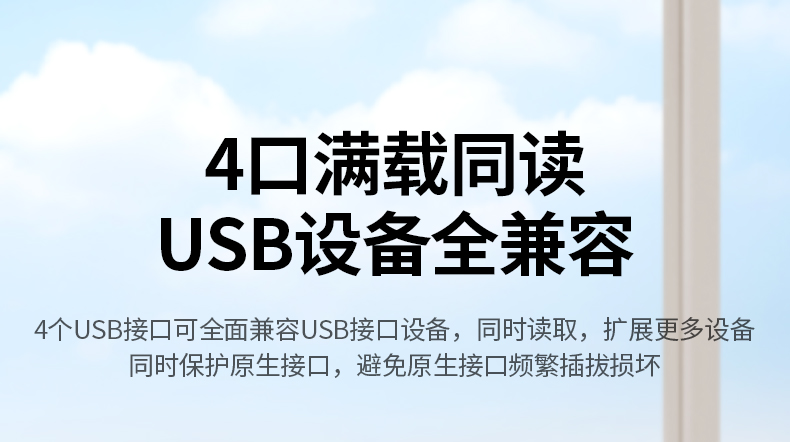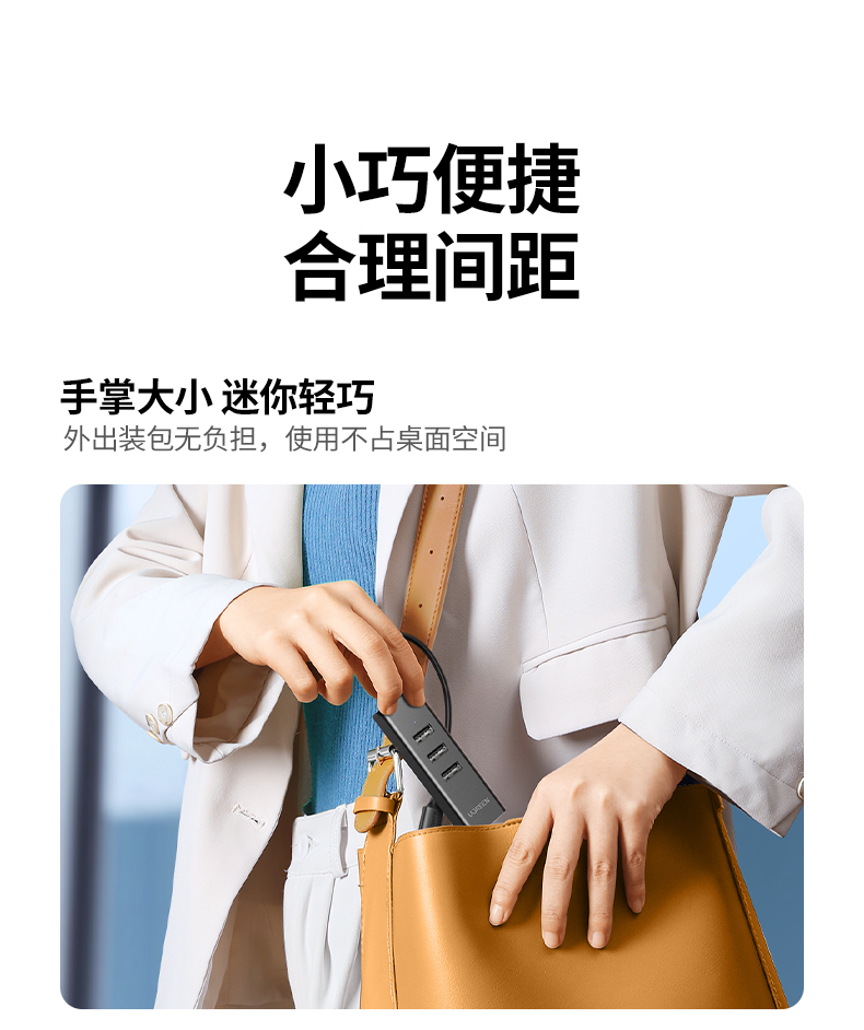 绿联usb扩展器插头多口拓展坞延长线集分线器转换接头typec笔记本电脑多功能ubs外接U盘一拖四usp接口转接hub(1m)
