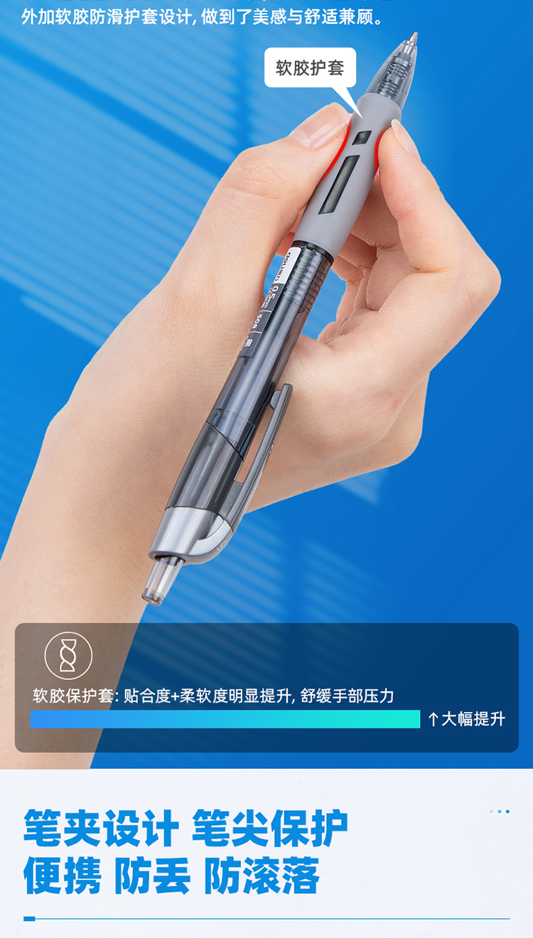 得力(deli)S08臻顺滑中性笔签字笔 0.5mm子弹头按动笔水笔 办公用品12支/盒
