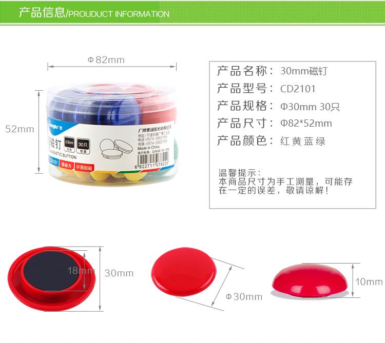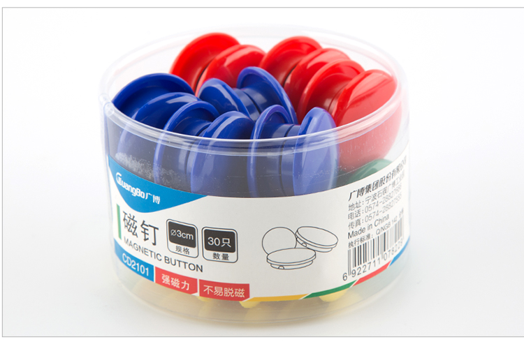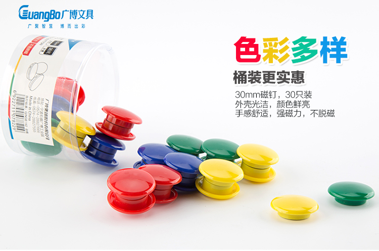 广博(GuangBo)CD2101 3cm彩色白板磁钉 30粒/筒 筒装磁粒 磁珠吸铁石 磁铁 白板磁扣 彩色圆行磁贴