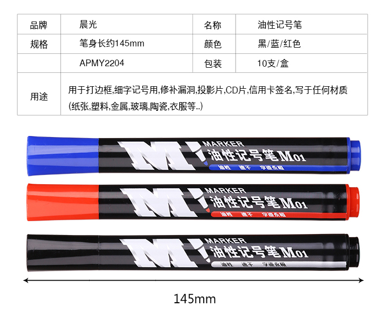 晨光(M&G)APMY2204记号笔 10支/盒 油性马克笔 大头笔油性粗头勾线笔 物流快递标记笔