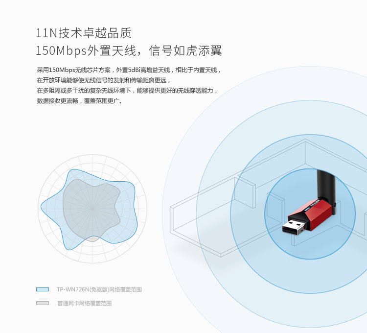 TP-LINK TL-WN726N免驱版 USB无线上网卡 随身wifi接收器发射器 外置天线 笔记本台式机通用