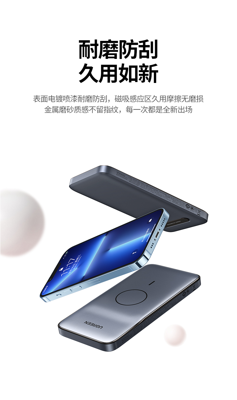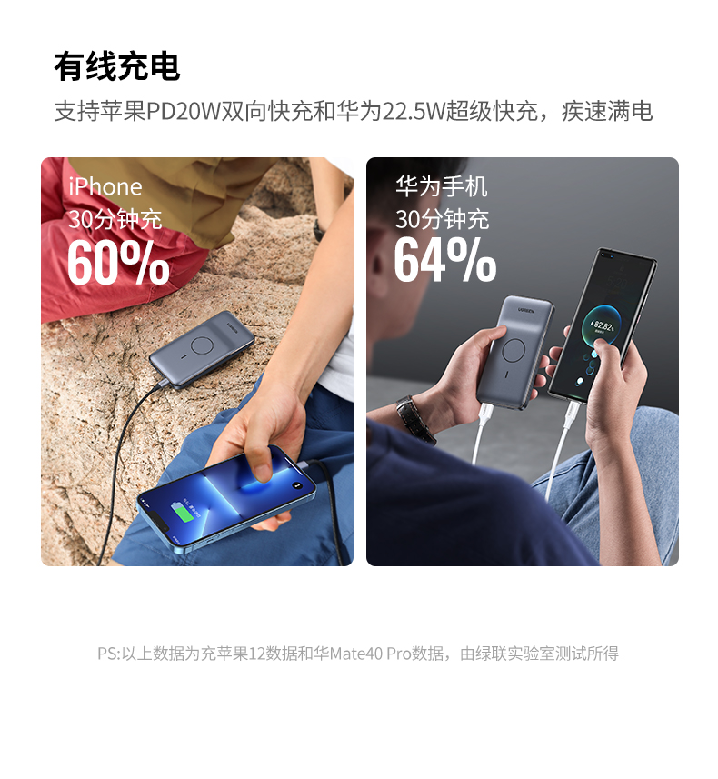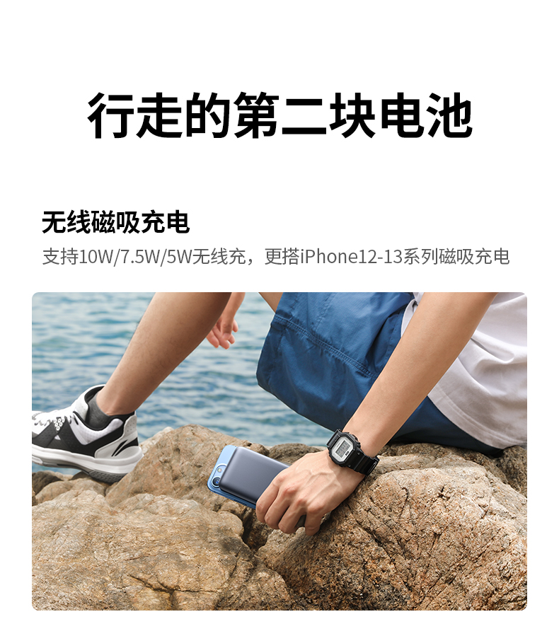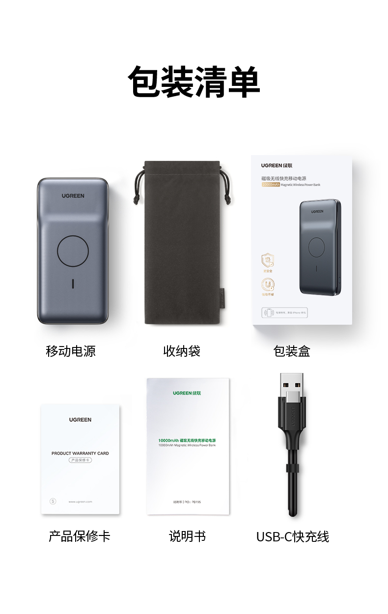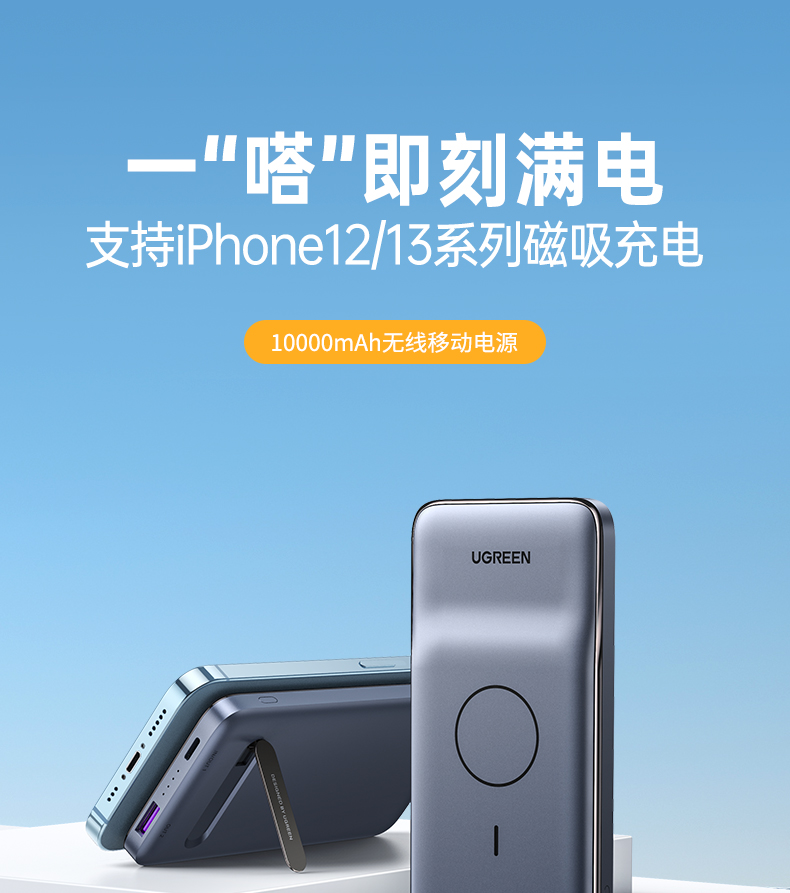 绿联三合一苹果磁吸无线充电宝PD20W/18W移动电源10000毫安时快充带支架适用MagSafe/苹果13/12系列