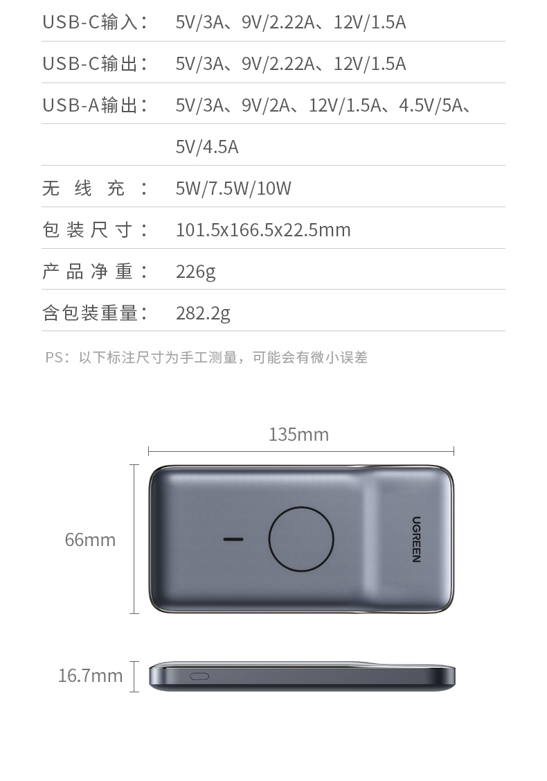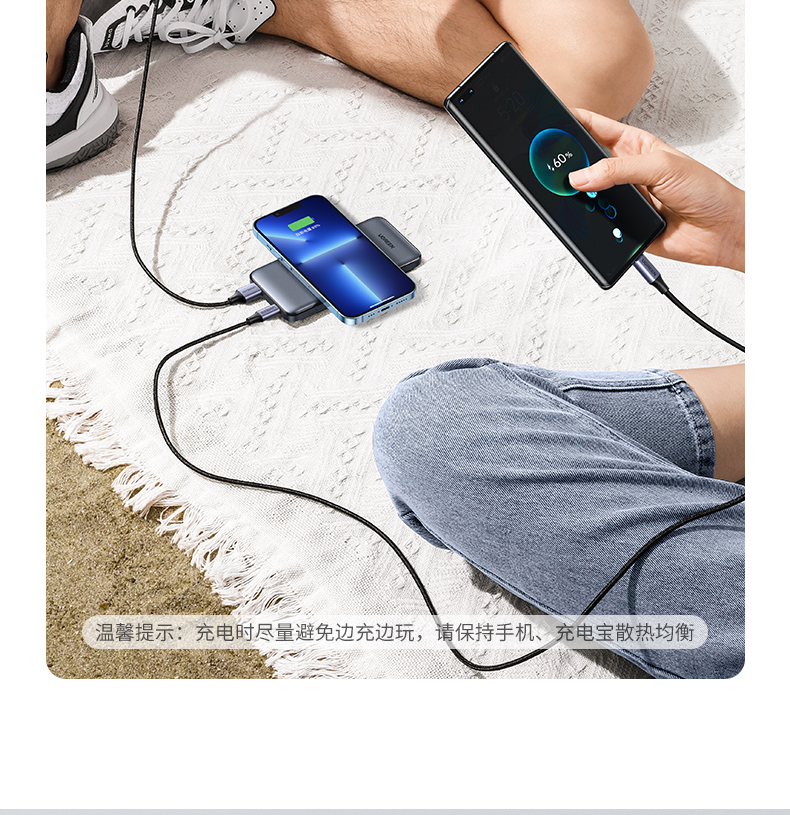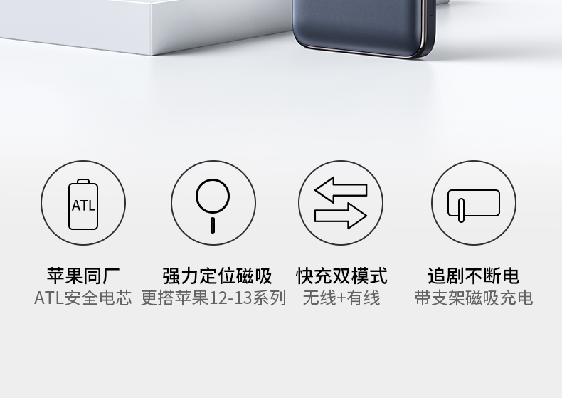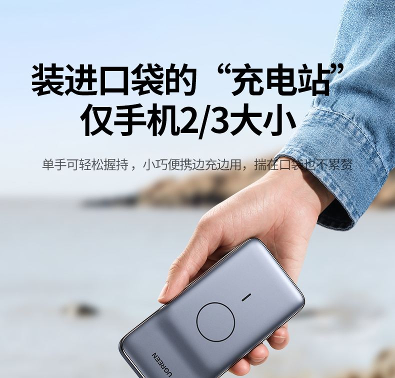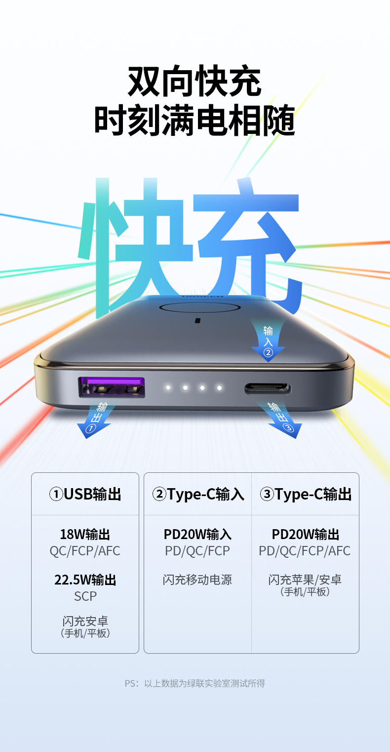 绿联三合一苹果磁吸无线充电宝PD20W/18W移动电源10000毫安时快充带支架适用MagSafe/苹果13/12系列