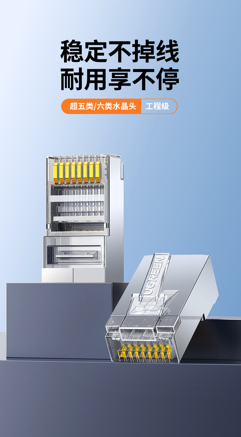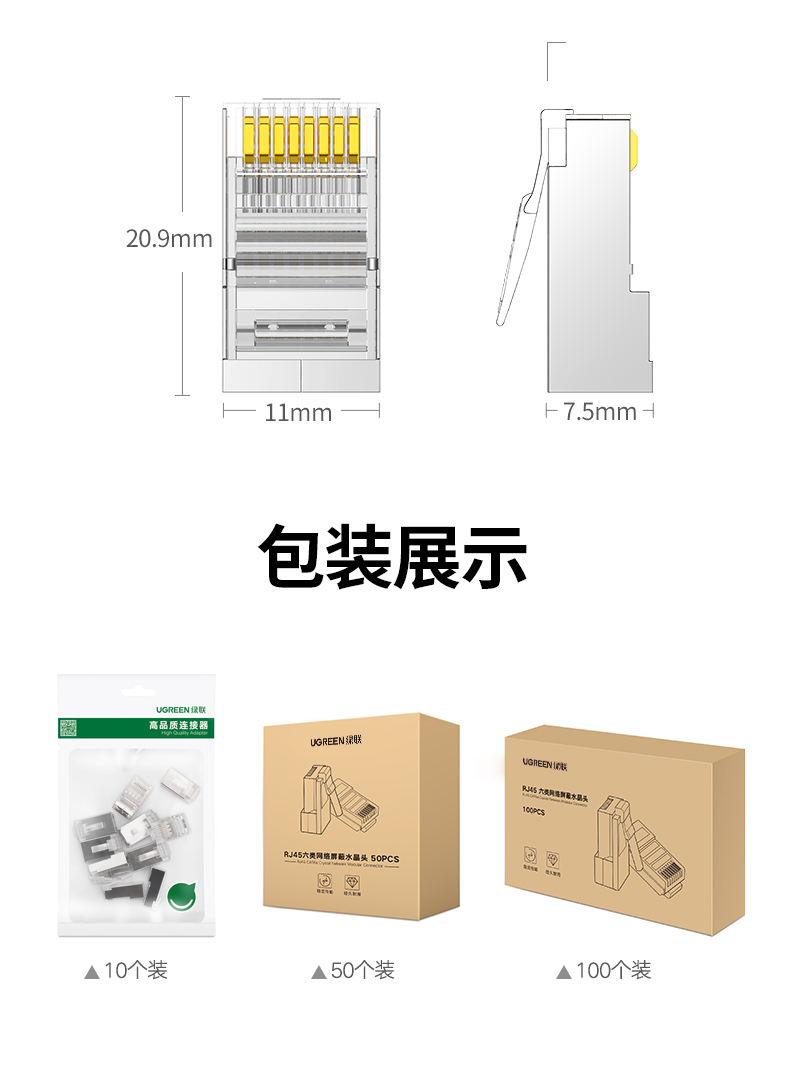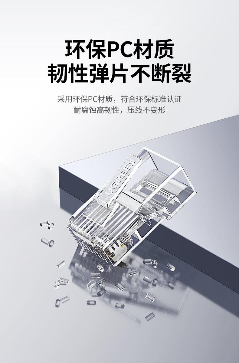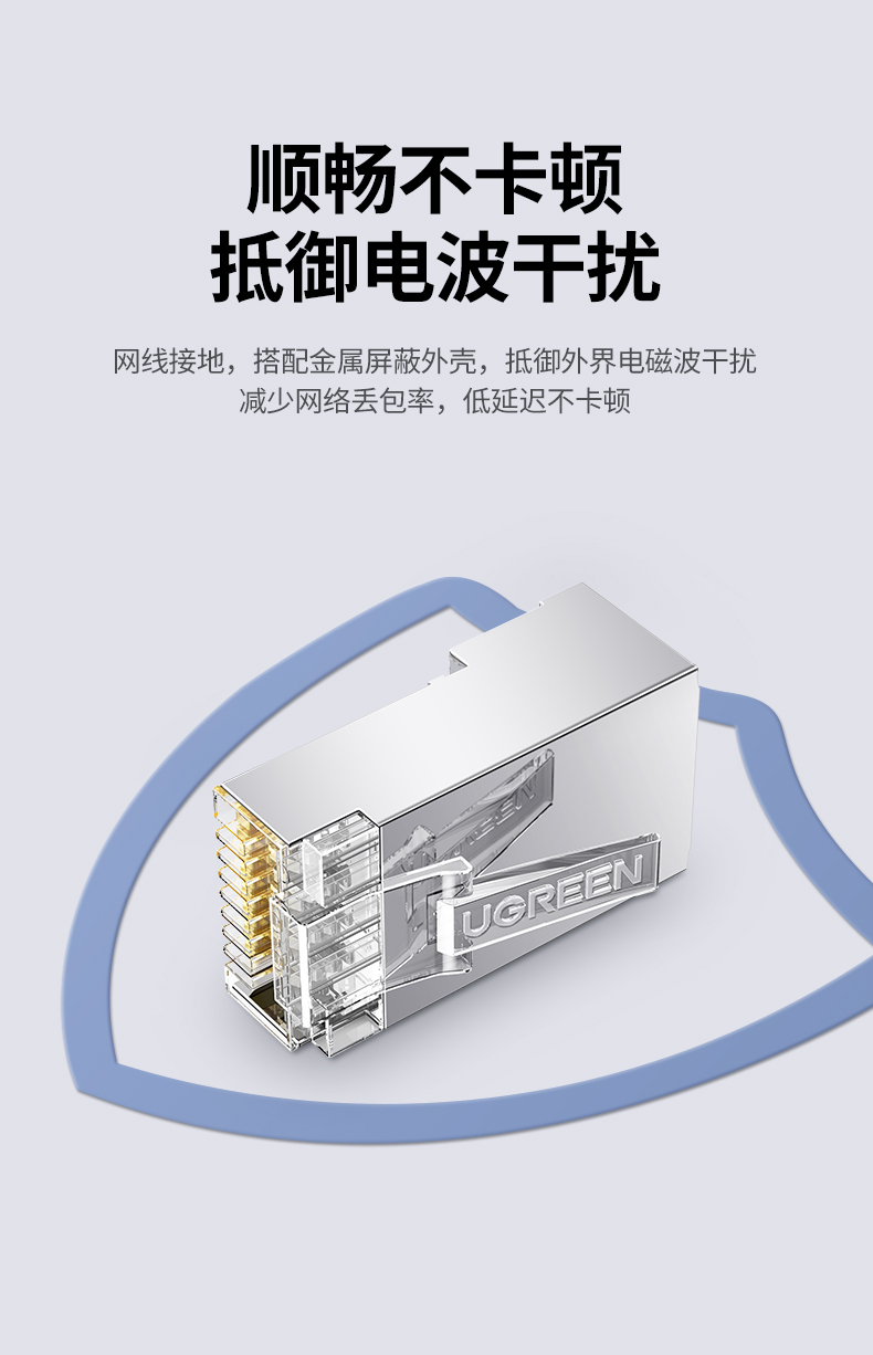 绿联Ugreen 六类RJ45网络水晶头 网络跳线水晶头 带屏蔽网线接头 Cat6水晶头 100个 50248