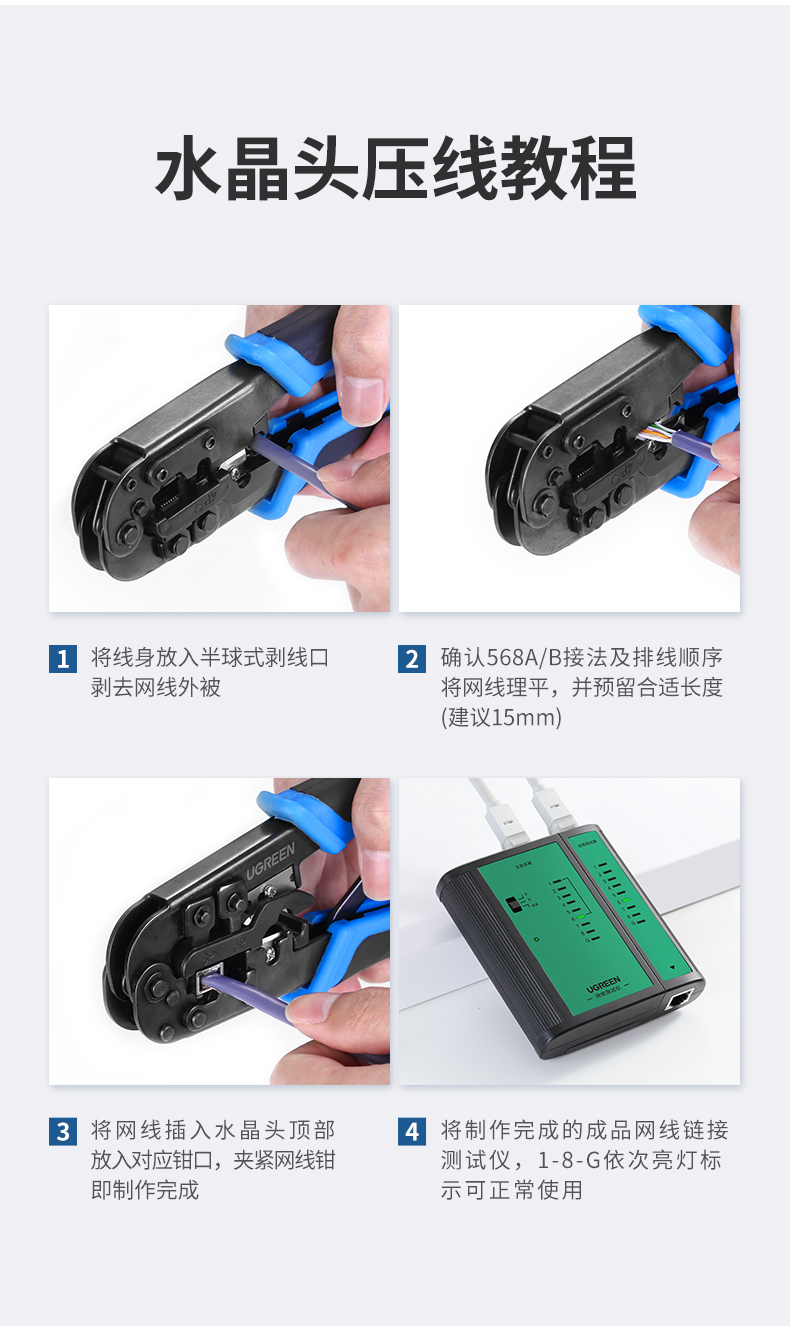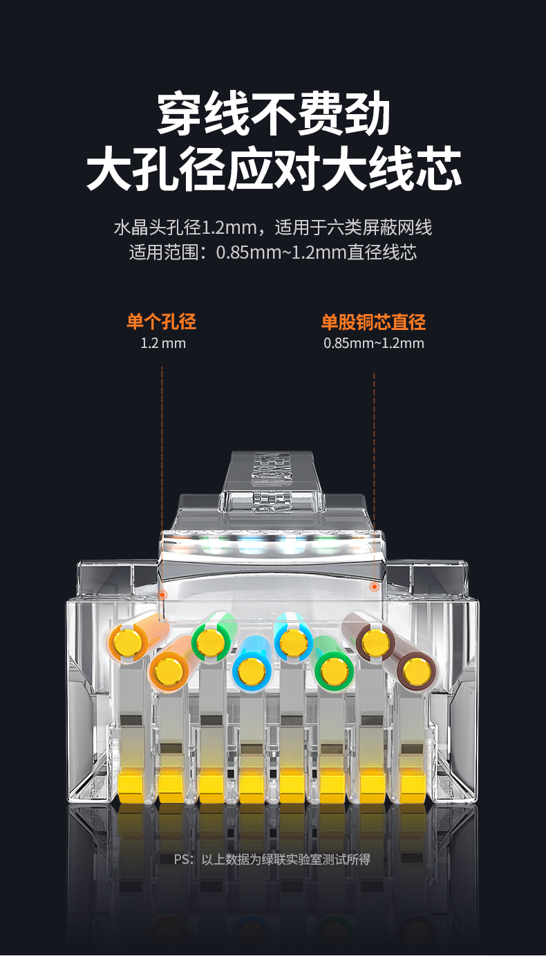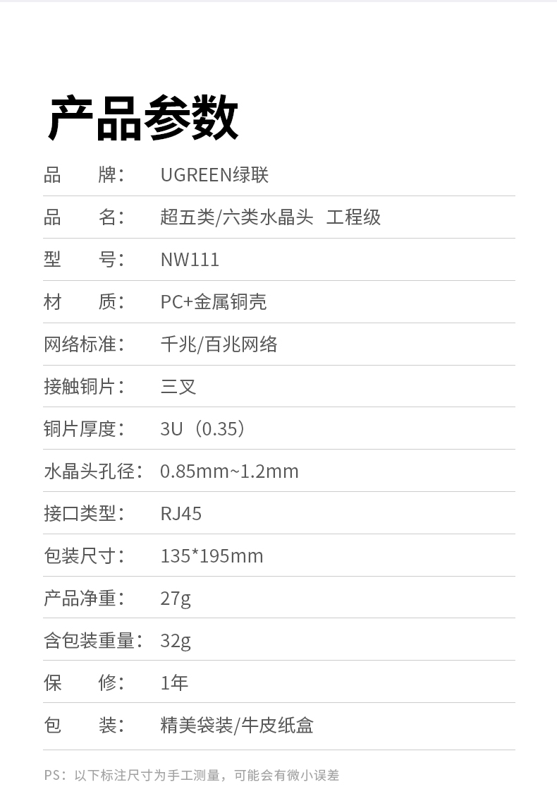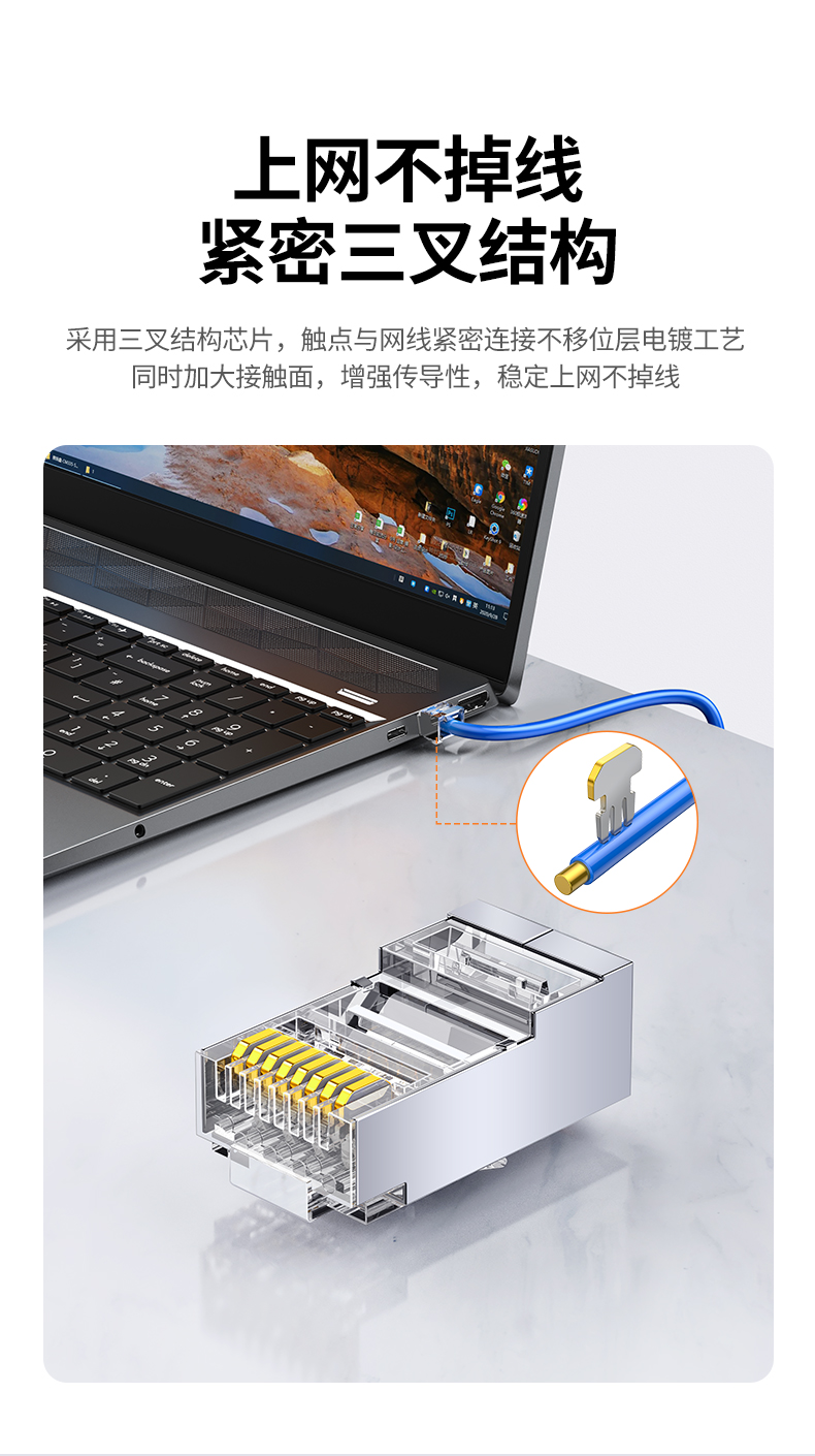 绿联Ugreen 六类RJ45网络水晶头 网络跳线水晶头 带屏蔽网线接头 Cat6水晶头 100个 50248