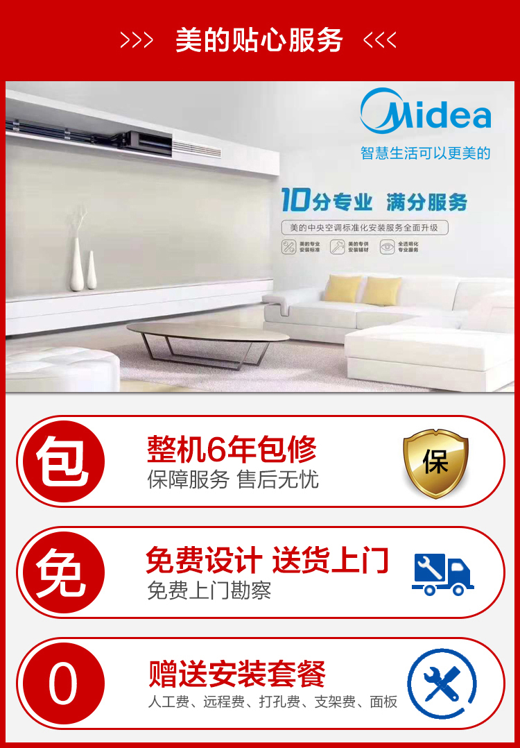 Midea/美的KFR-35T2W/B3DN1-LX(1)Ⅲ全直流变频风管机一拖一乐享三代客厅1.5匹美的家用中央空调