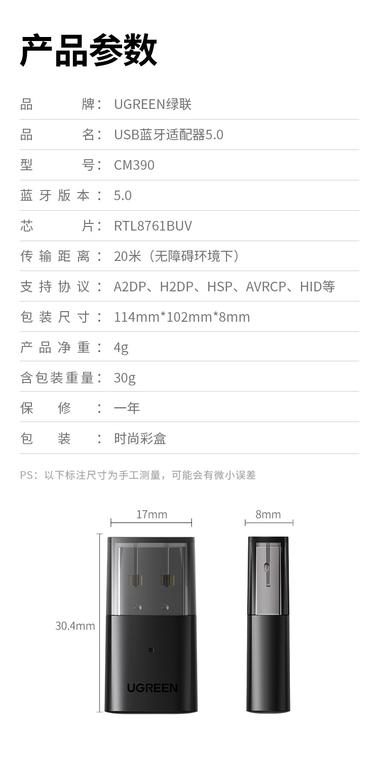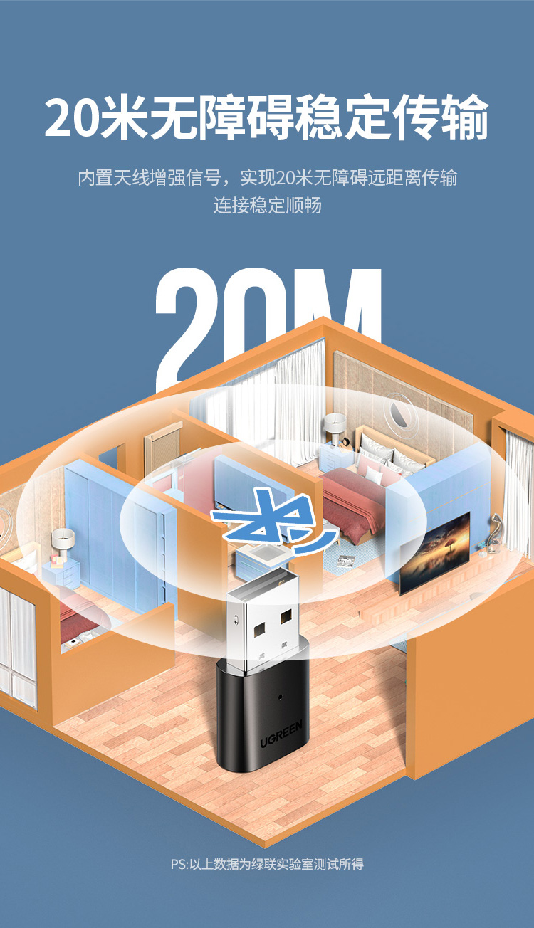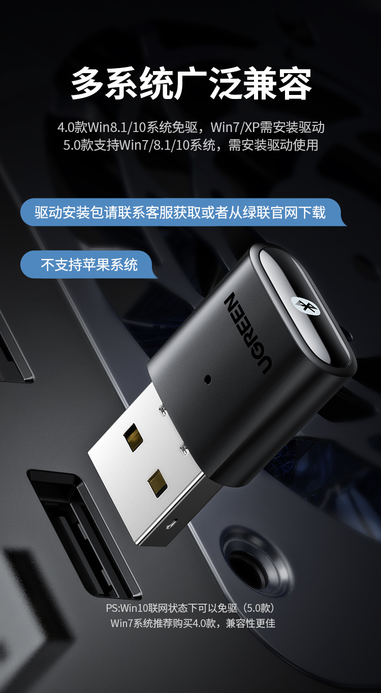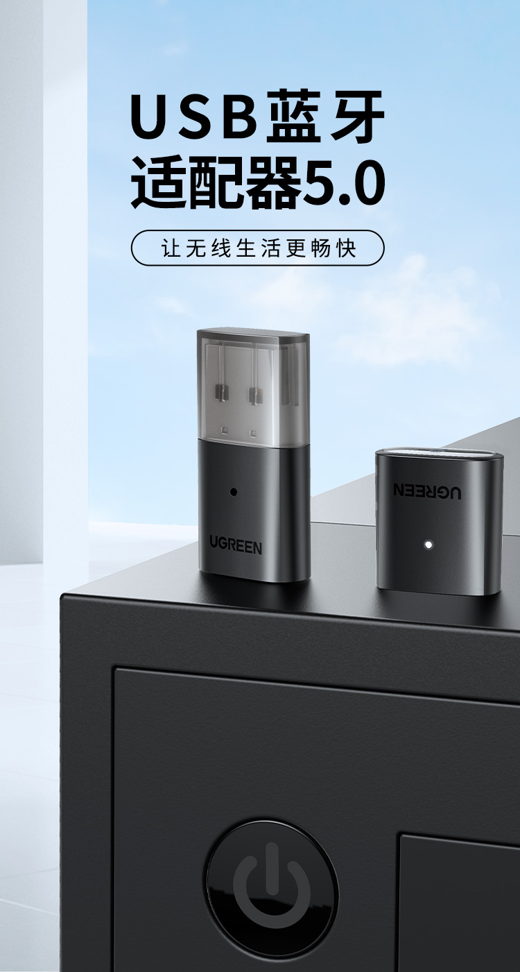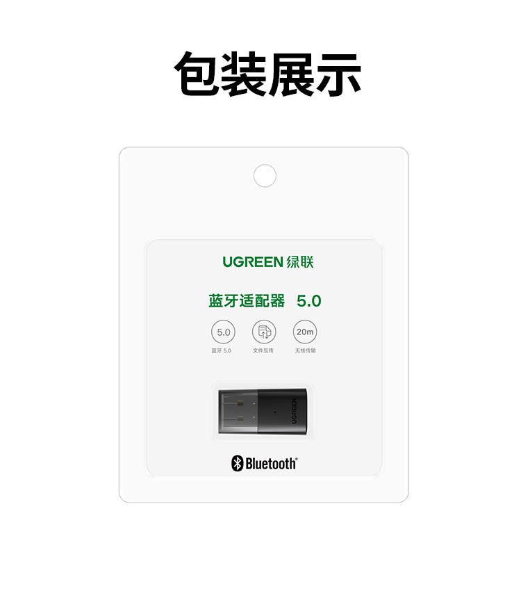 绿联 USB蓝牙适配器5.0发射器 蓝牙接收器 PC台式机笔记本电脑接手机无线蓝牙耳机音响鼠标键盘