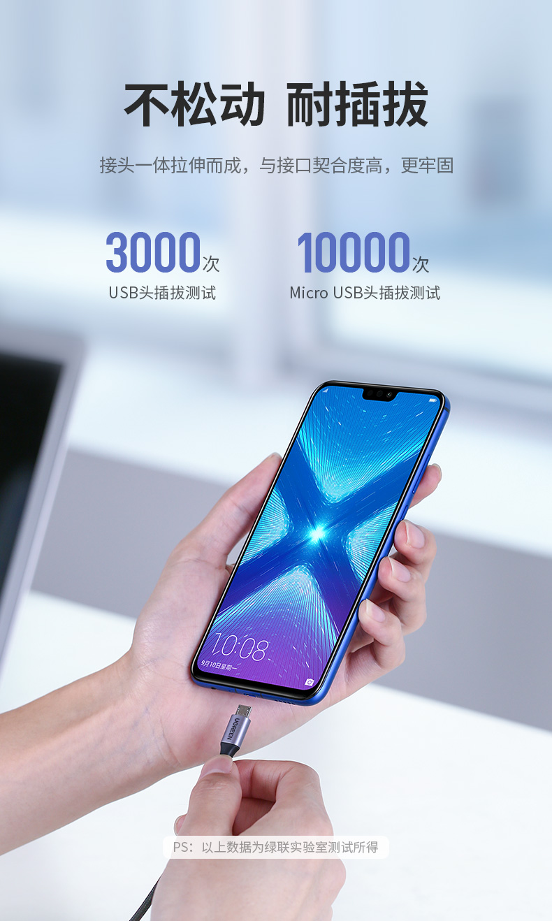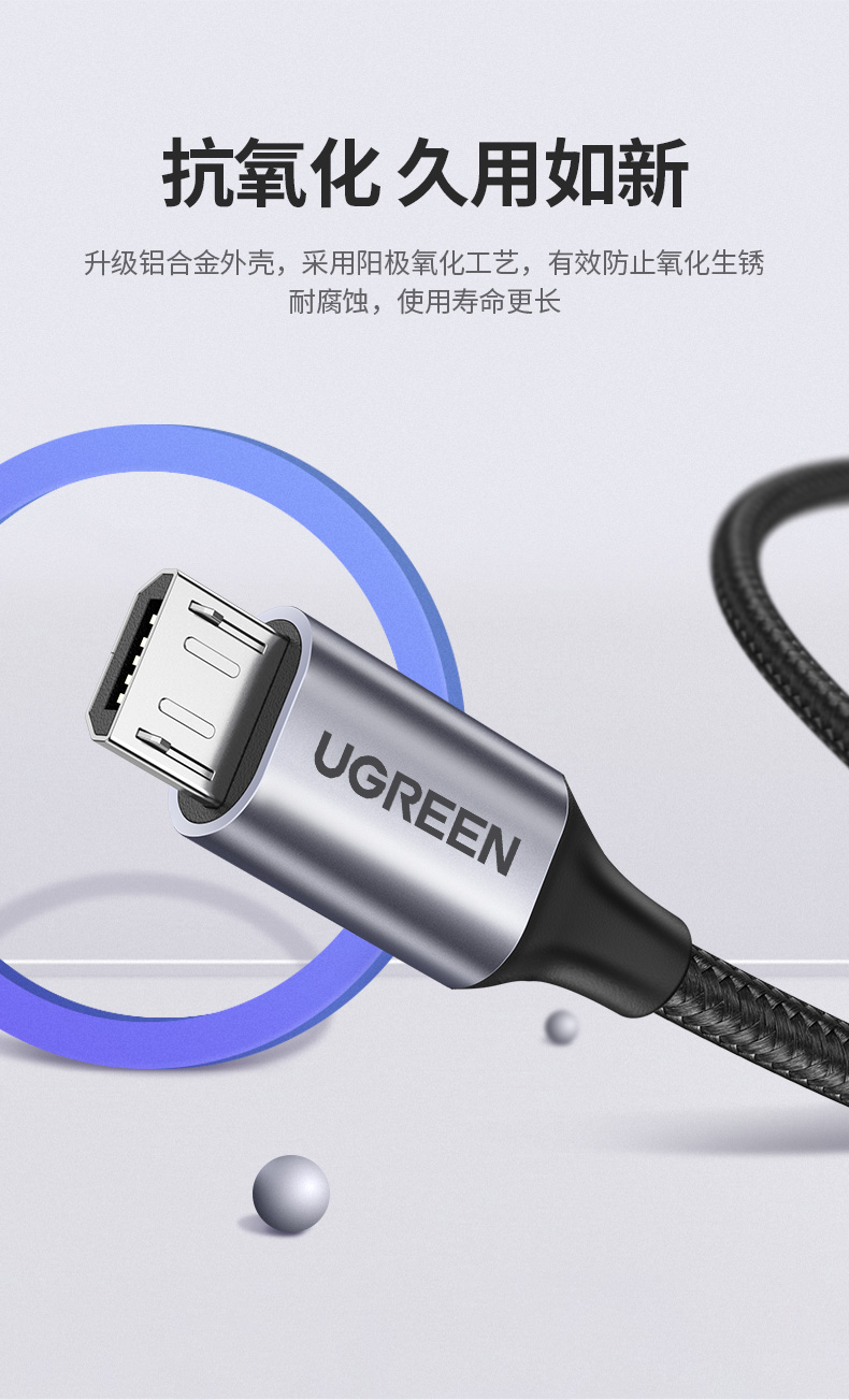 绿联安卓数据线快充高速加长2米充电器线microusb短适用华为nova荣耀oppo红米vivo小米手机