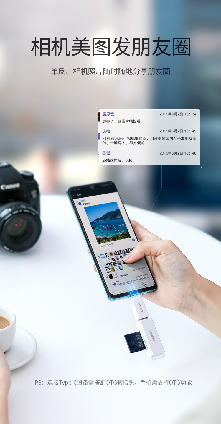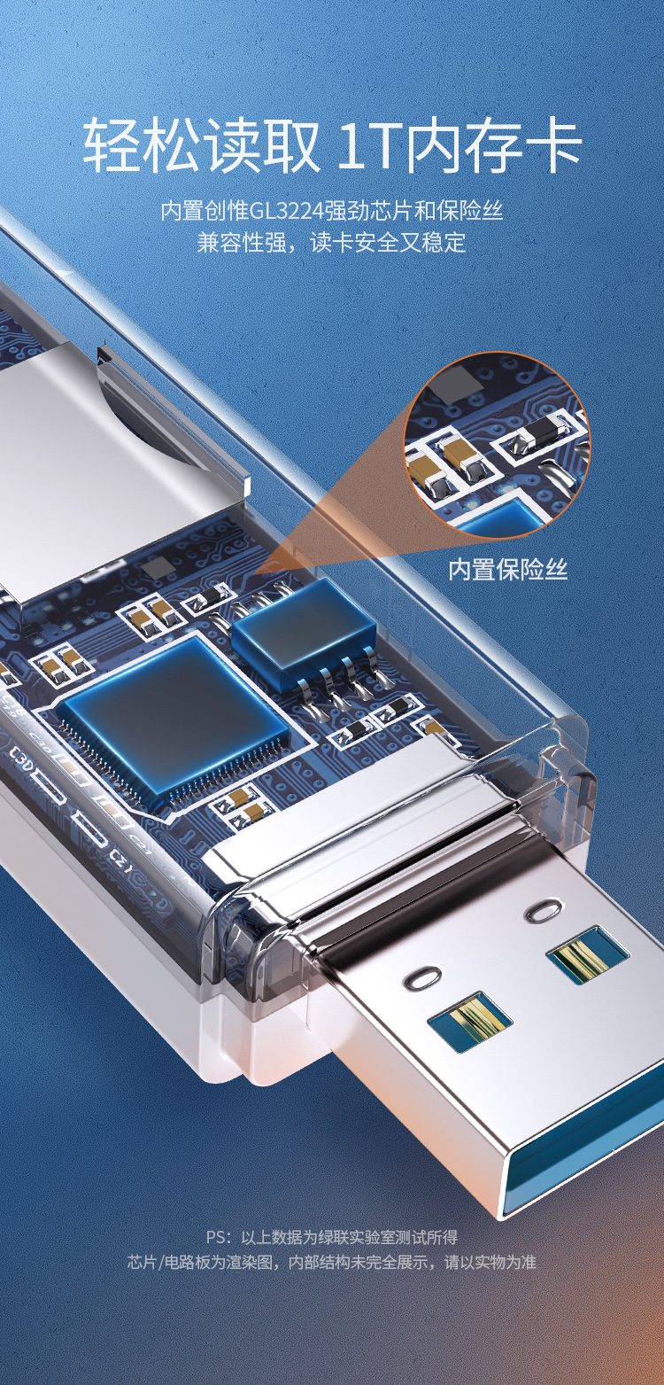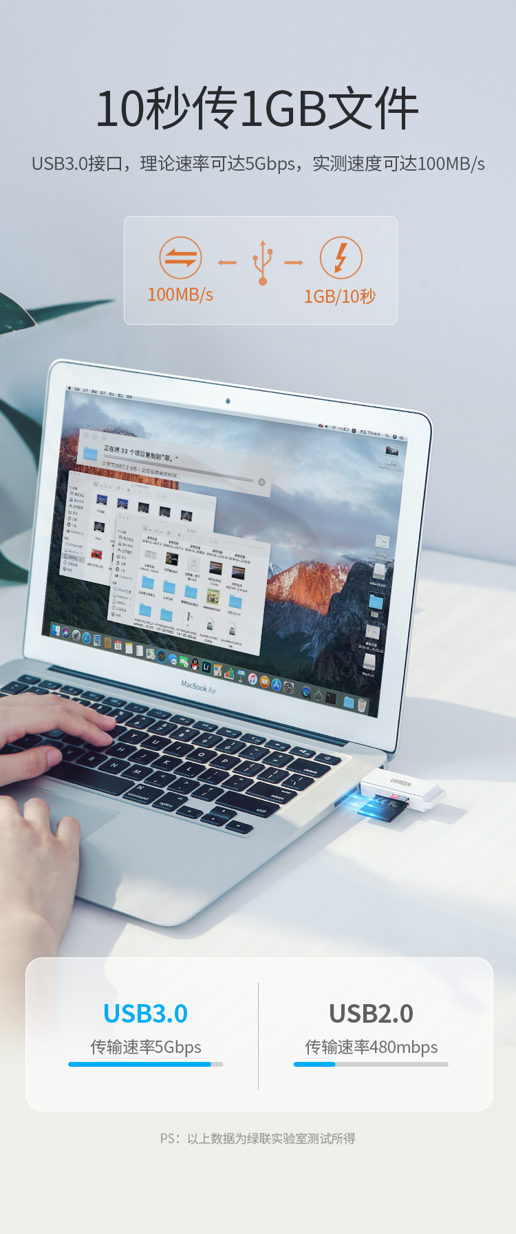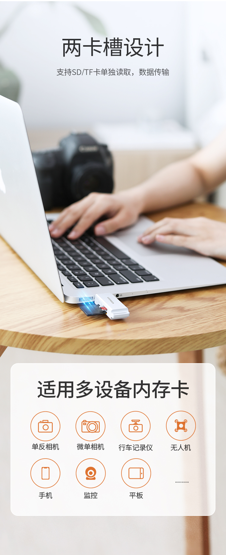 绿联读卡器多功能二合一usb3.0高速sd/tf内存大小卡手机电脑车载小型otg转换器适用尼康佳能索尼单反相机