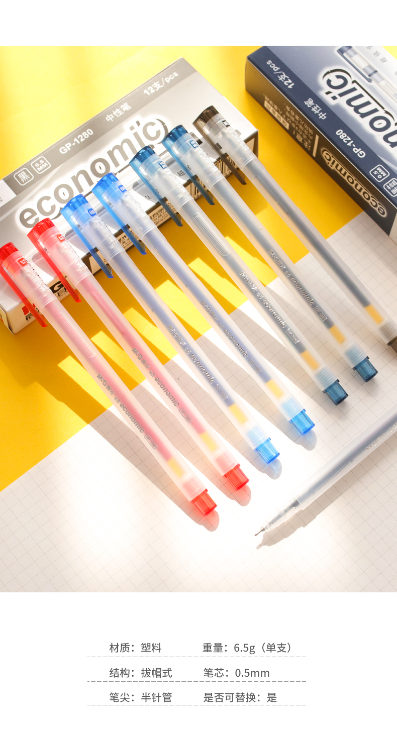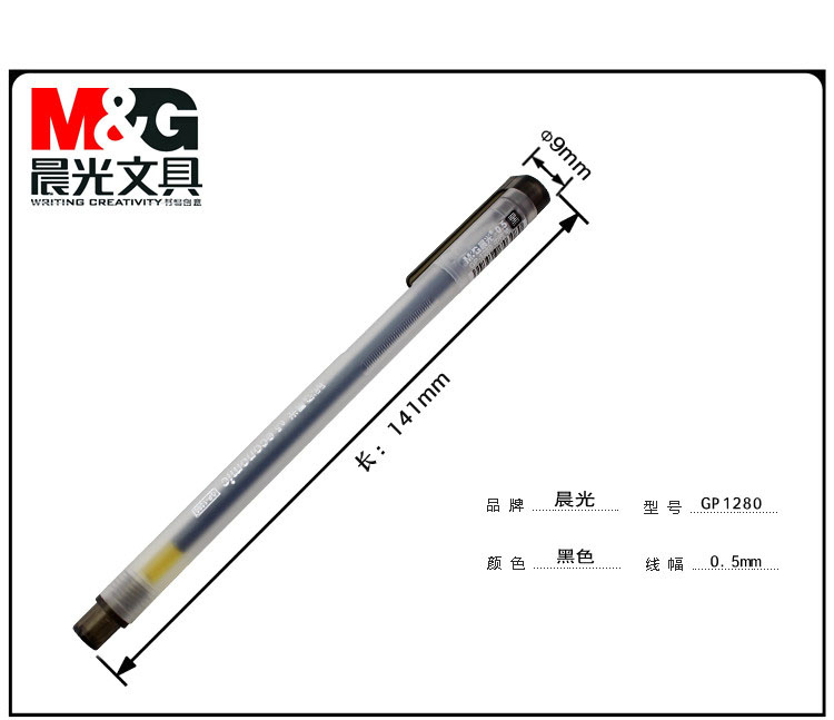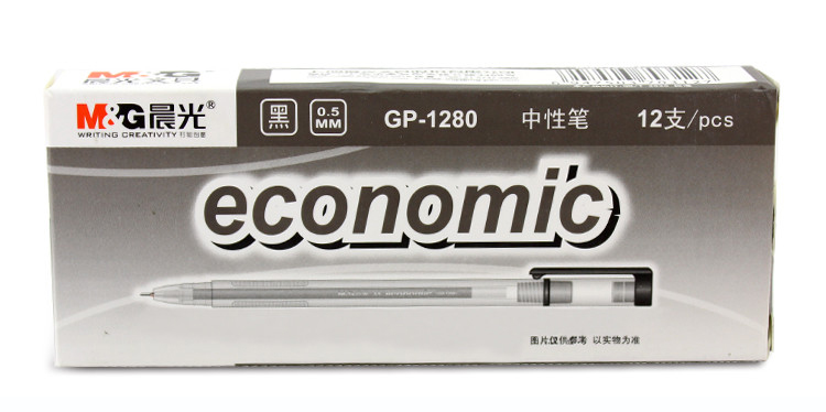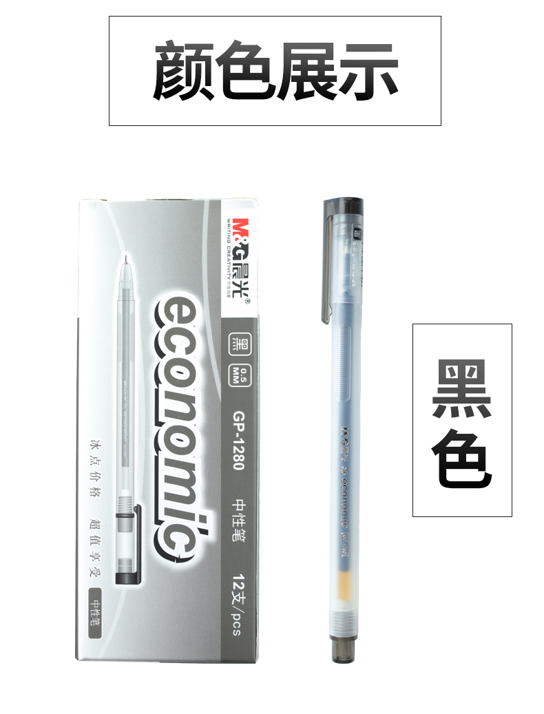 晨光(M&G)GP1280黑色中性笔 12支/盒 0.5mm 水性笔 签字笔 黑笔 碳素笔 写字笔 书写笔 办公用品 黑色