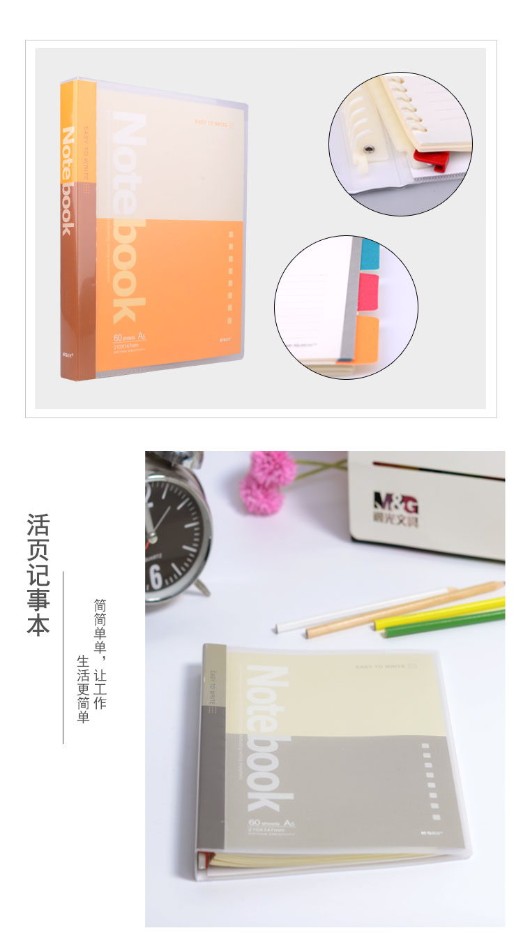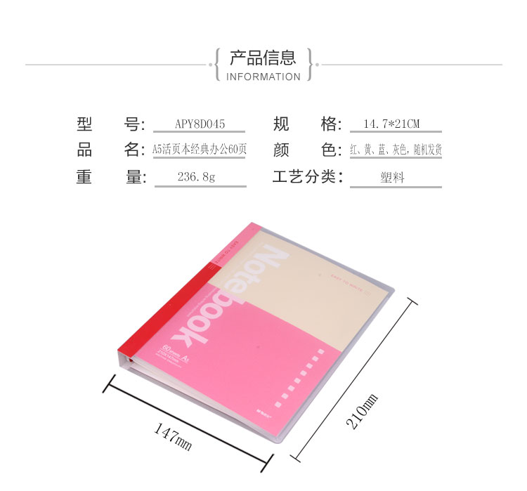 晨光(M&G)APY8D045 A560张活页本 26孔PP封面活页本 活页笔记本 记录本会议本 办公用品笔记本记事 颜色随机