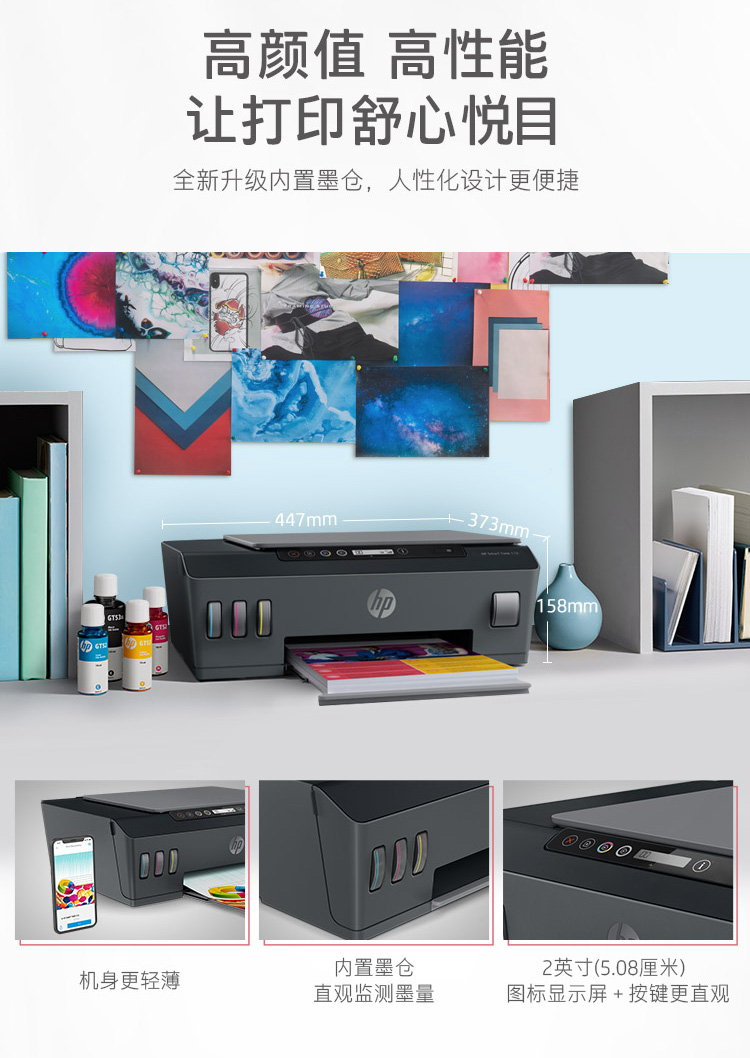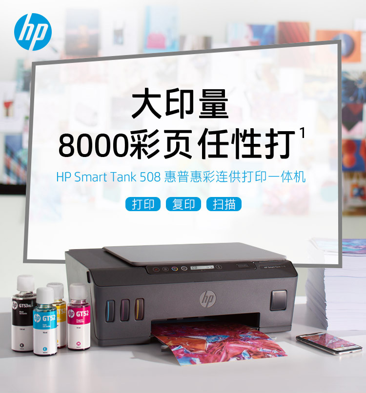 惠普HP Smart Tank 508 彩色墨仓式打印一体机 惠普tank508打印机家用加墨打印复印扫描 家用办公