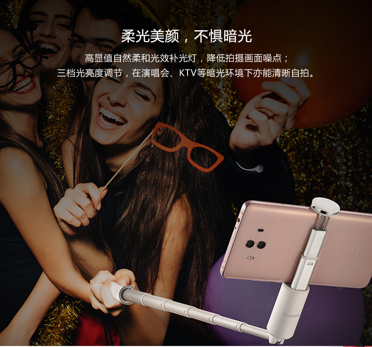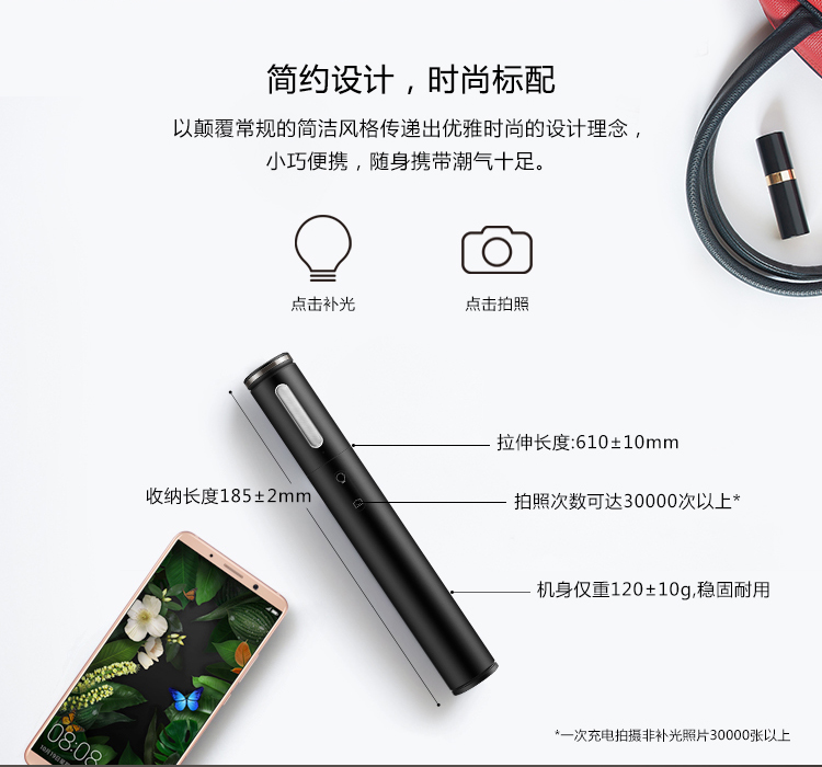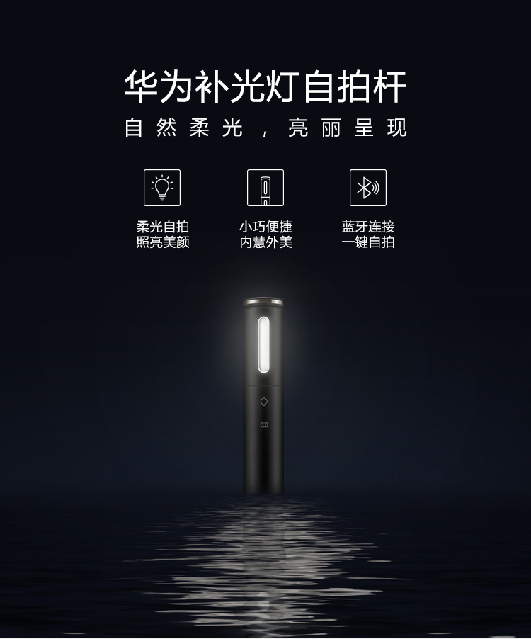 华为(HUAWEI)补光灯自拍杆 CF33 无线蓝牙连接自拍神器补光器 安卓 苹果手机通用自拍杆
