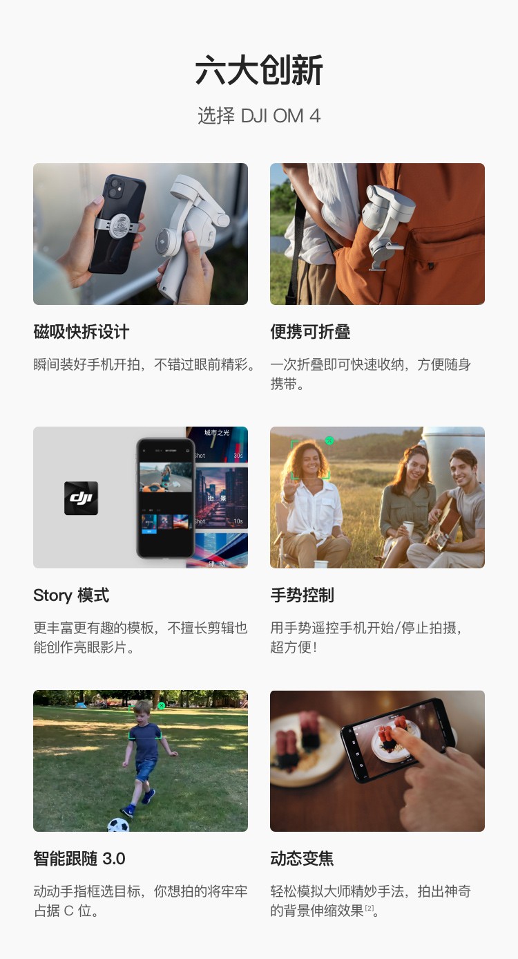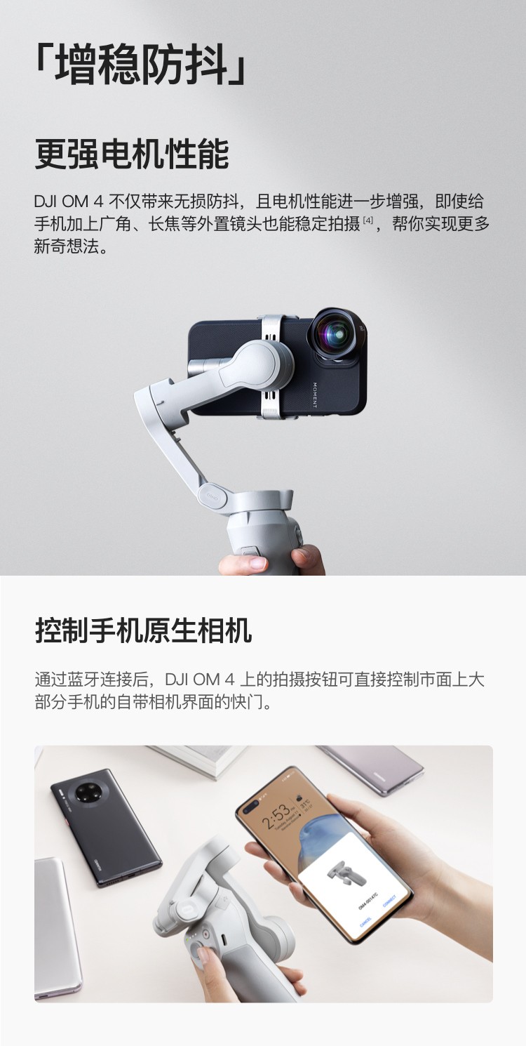 华为大疆Osmo Mobile 4灵眸 磁吸支架手持云台三轴防抖可折叠拍摄vlog手机稳定器 单反运动相机户外自拍杆直播