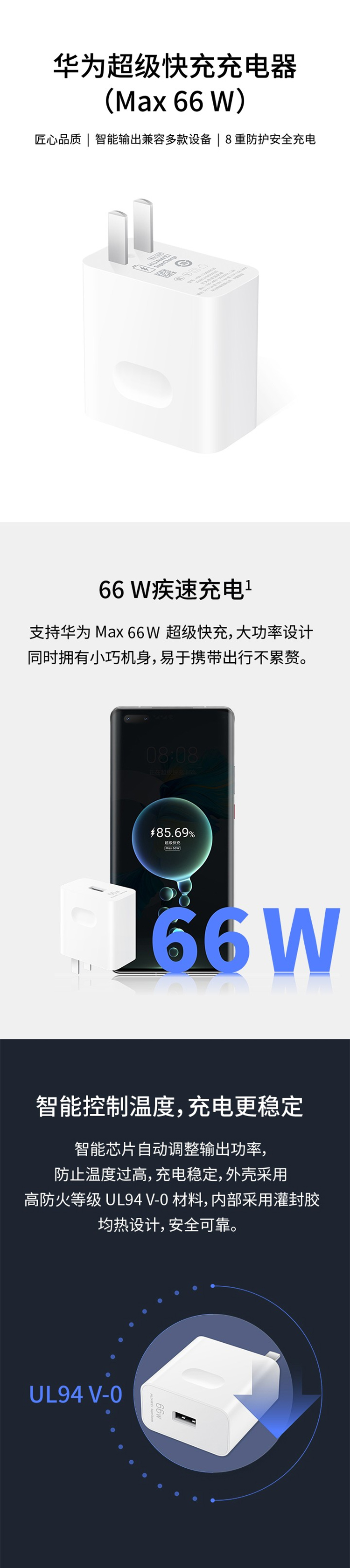华为超级快充充电器(Max 66W)11V6A充头+6A线 适配Mate40Pro 40RS保时捷Nova8/Pro等