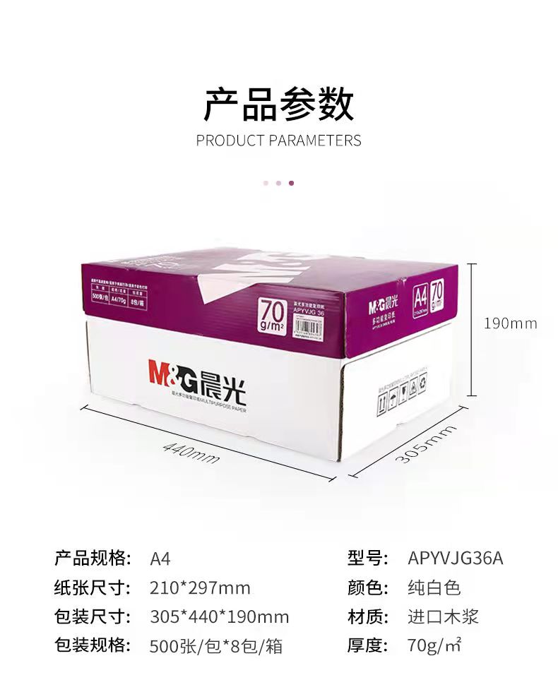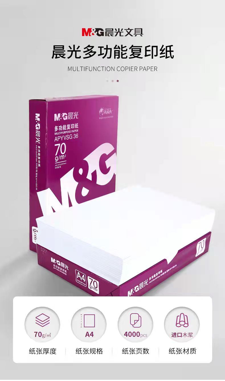 晨光A4/70g多功能双面打印纸复印纸 500张/包 8包/箱(整箱4000张)