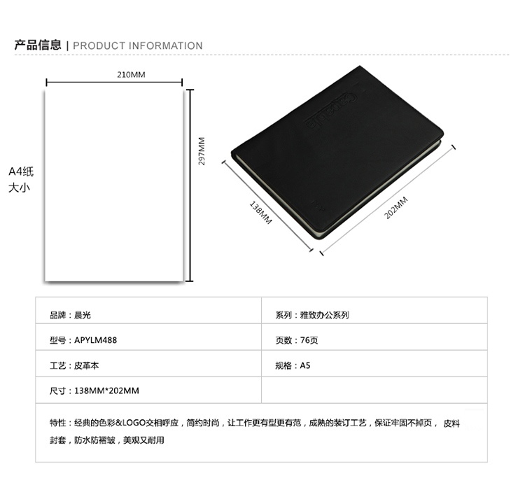 晨光(M&G)APYLM488雅纹皮面本3本 A5/76张胶套本 记事本 日记本 商务笔记本子练习本 笔记本/记事本