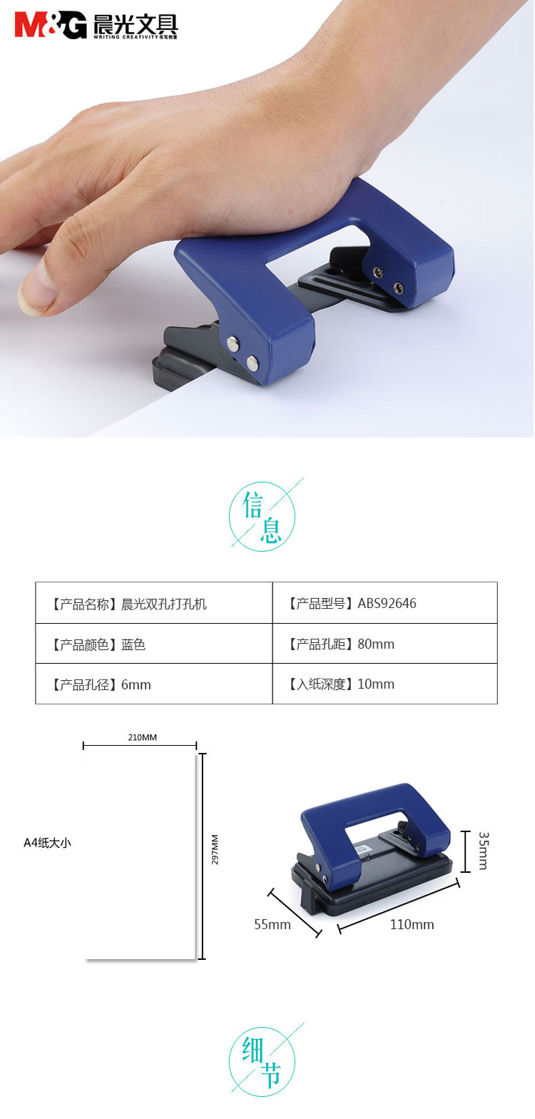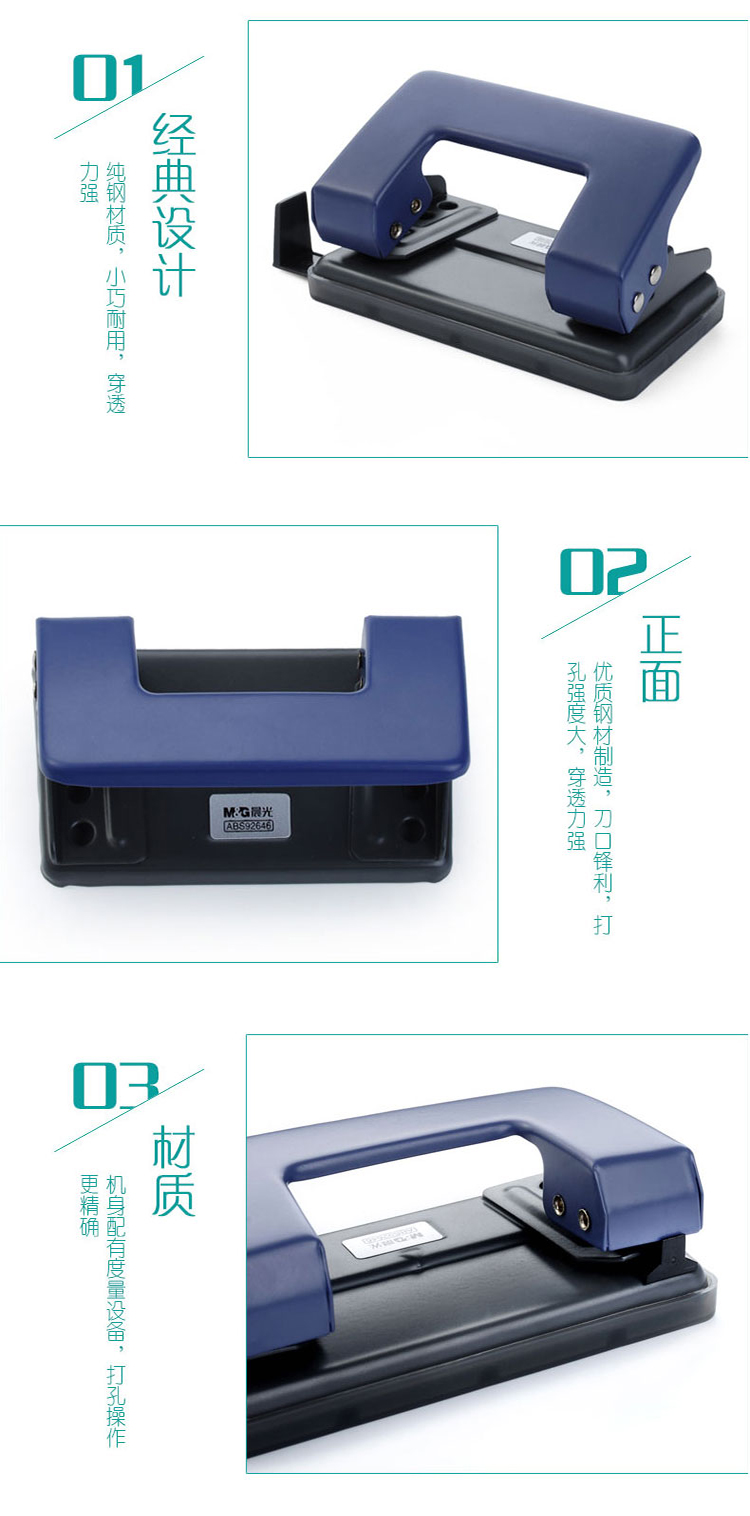 晨光(M&G)ABS92648双孔打孔机 可打30张A4纸 二孔打孔器打洞器 手动省力打孔机 颜色随机 打孔机