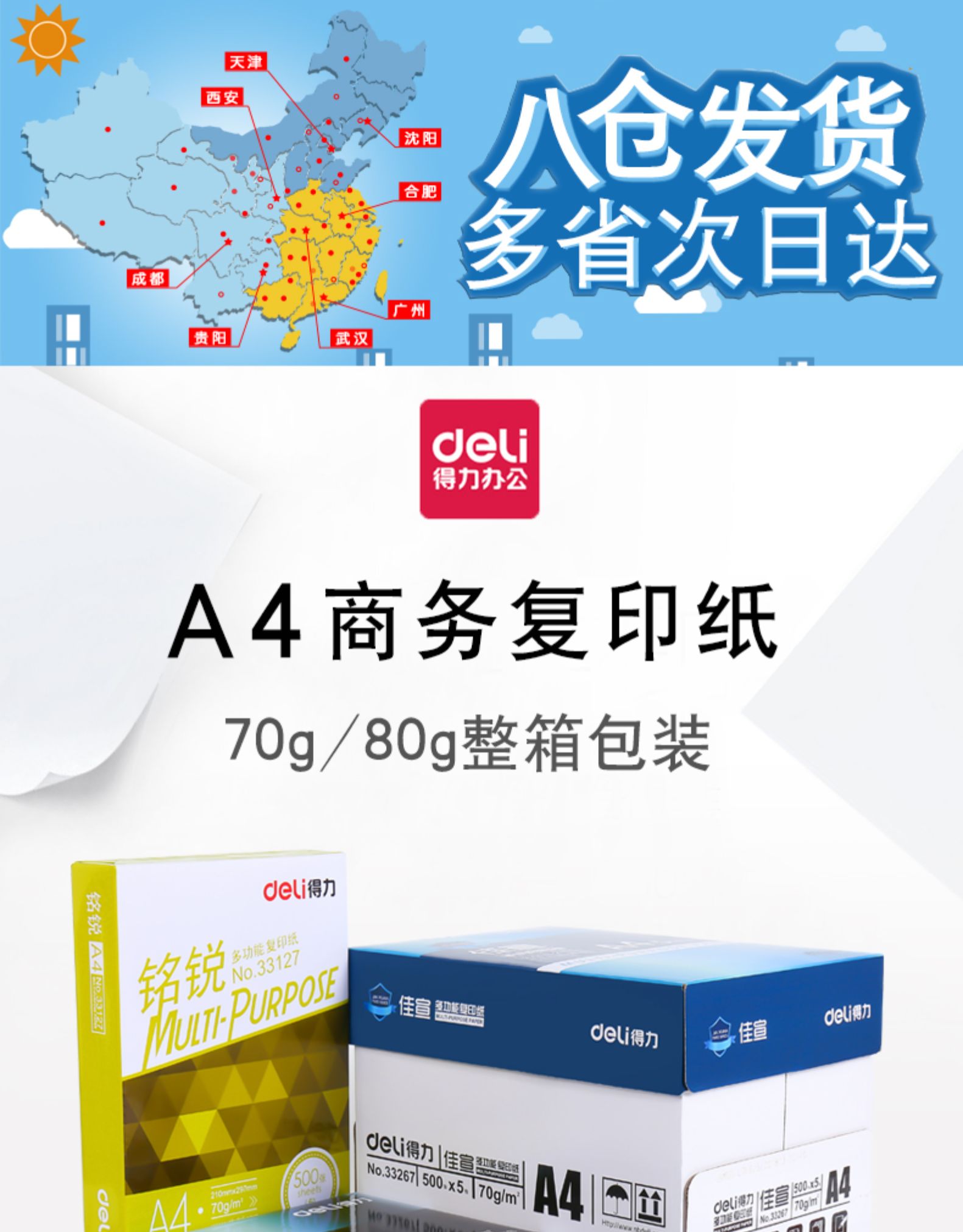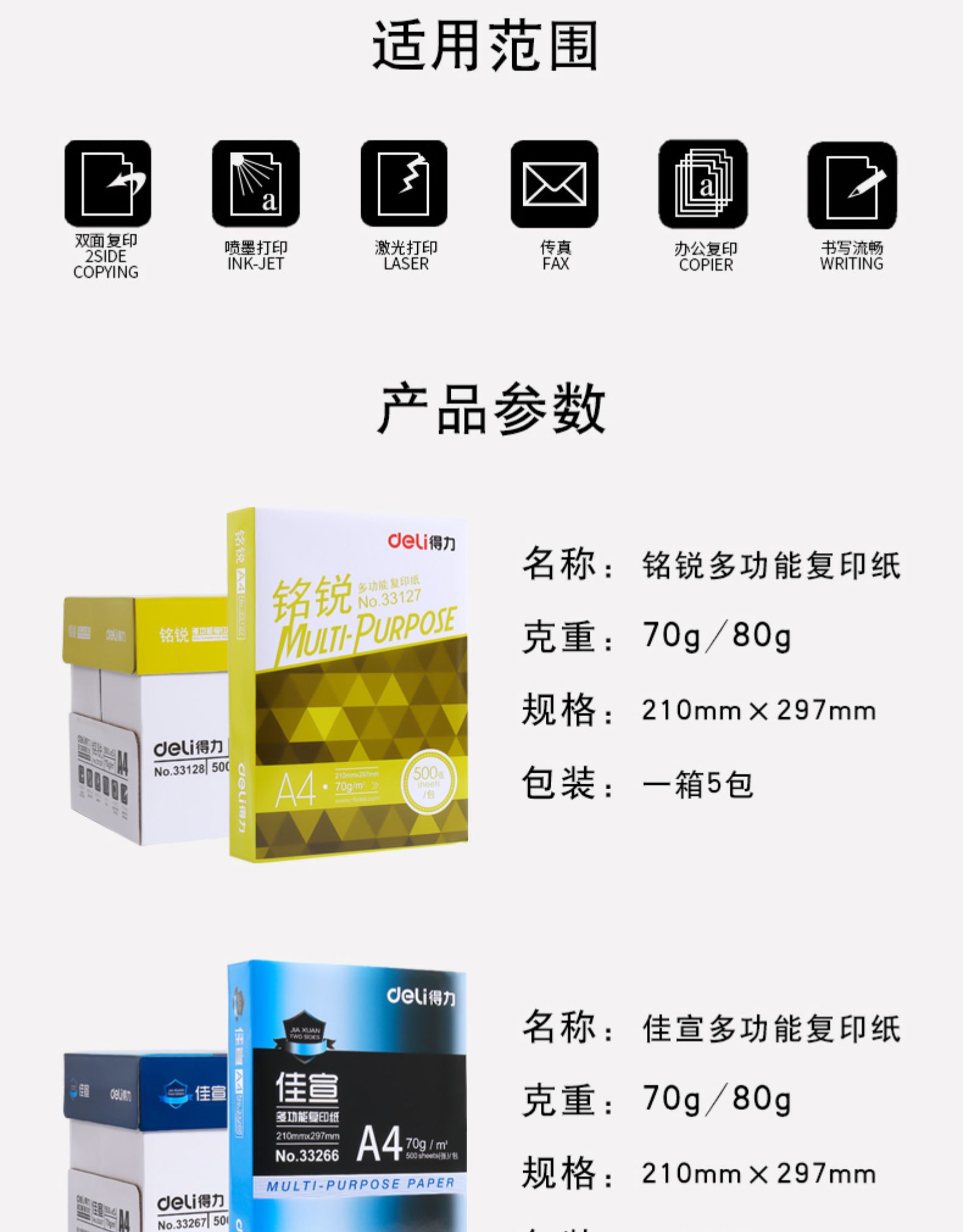 得力(deli)复印纸佳宣铭锐a4打印纸70g80g整箱a4纸激光打印机复印机4a多功能办公用纸