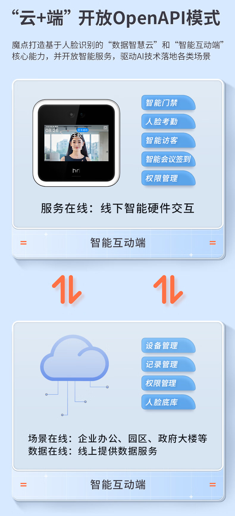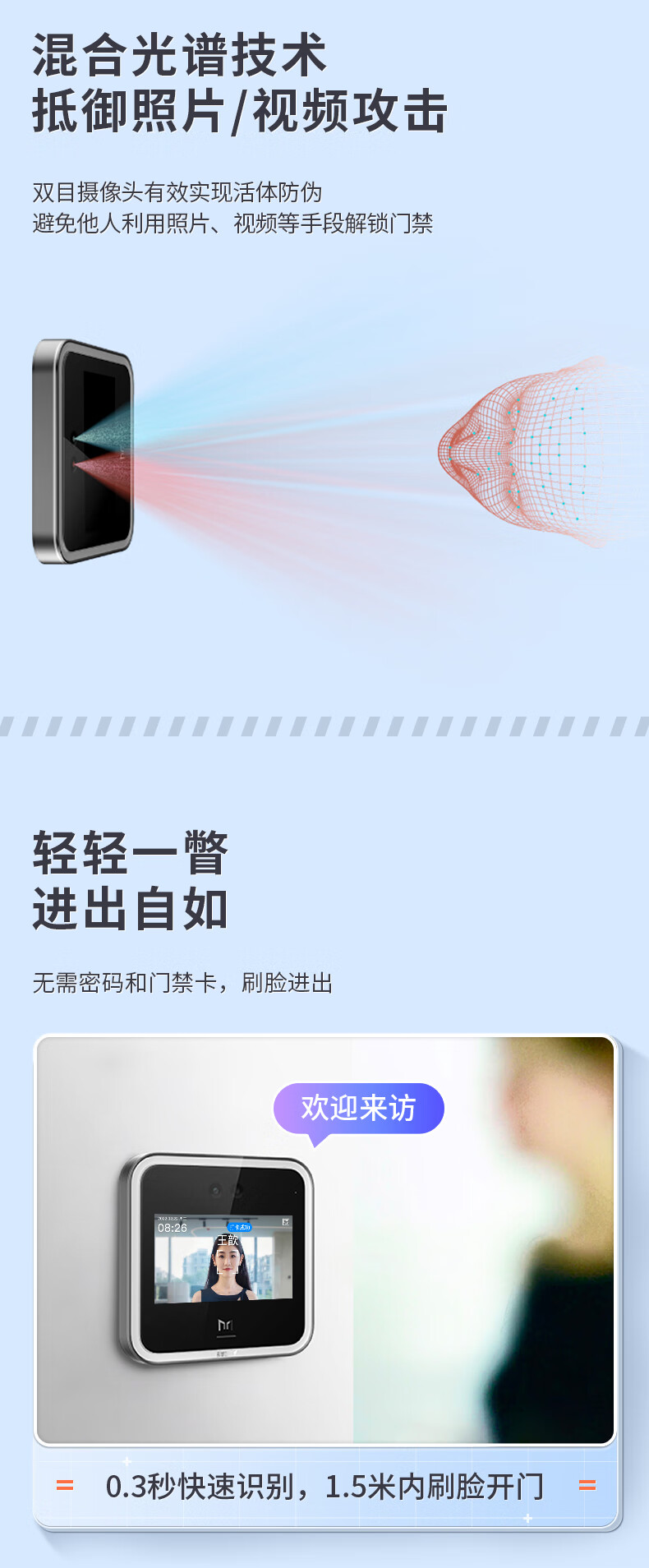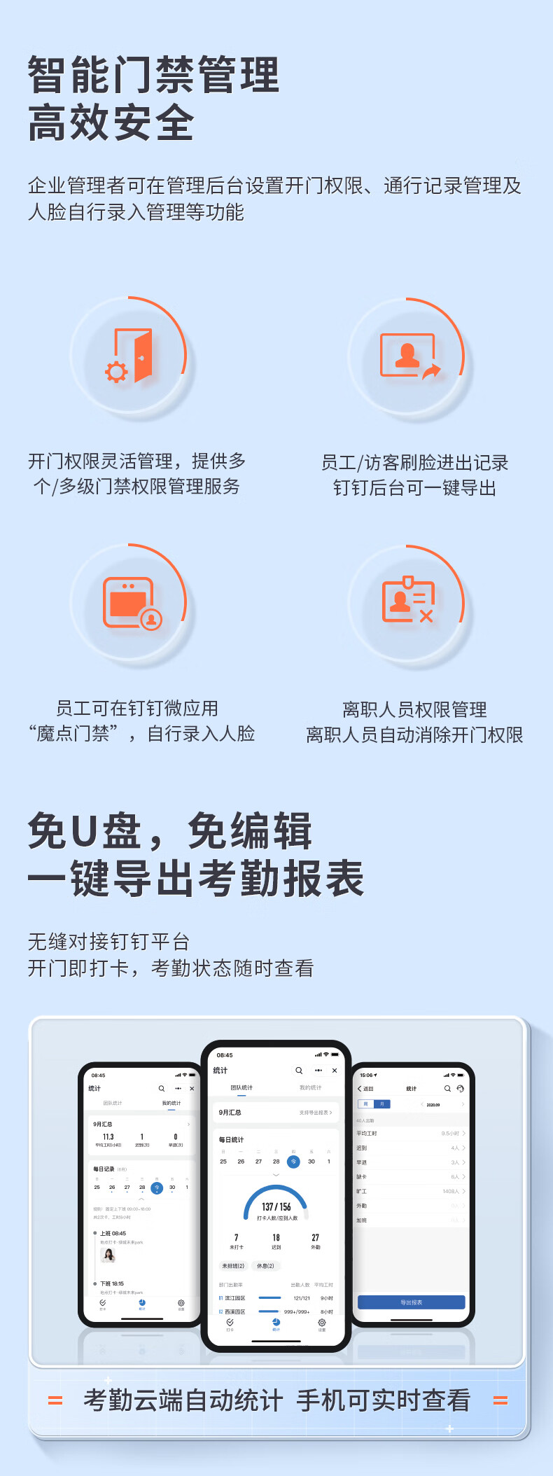 魔点 D2智能人脸云考勤门禁机钉钉动态人脸识别非指纹玻璃门禁系统办公室刷脸测温门禁锁签到打卡机一体机 D2主机(不含门禁配件)