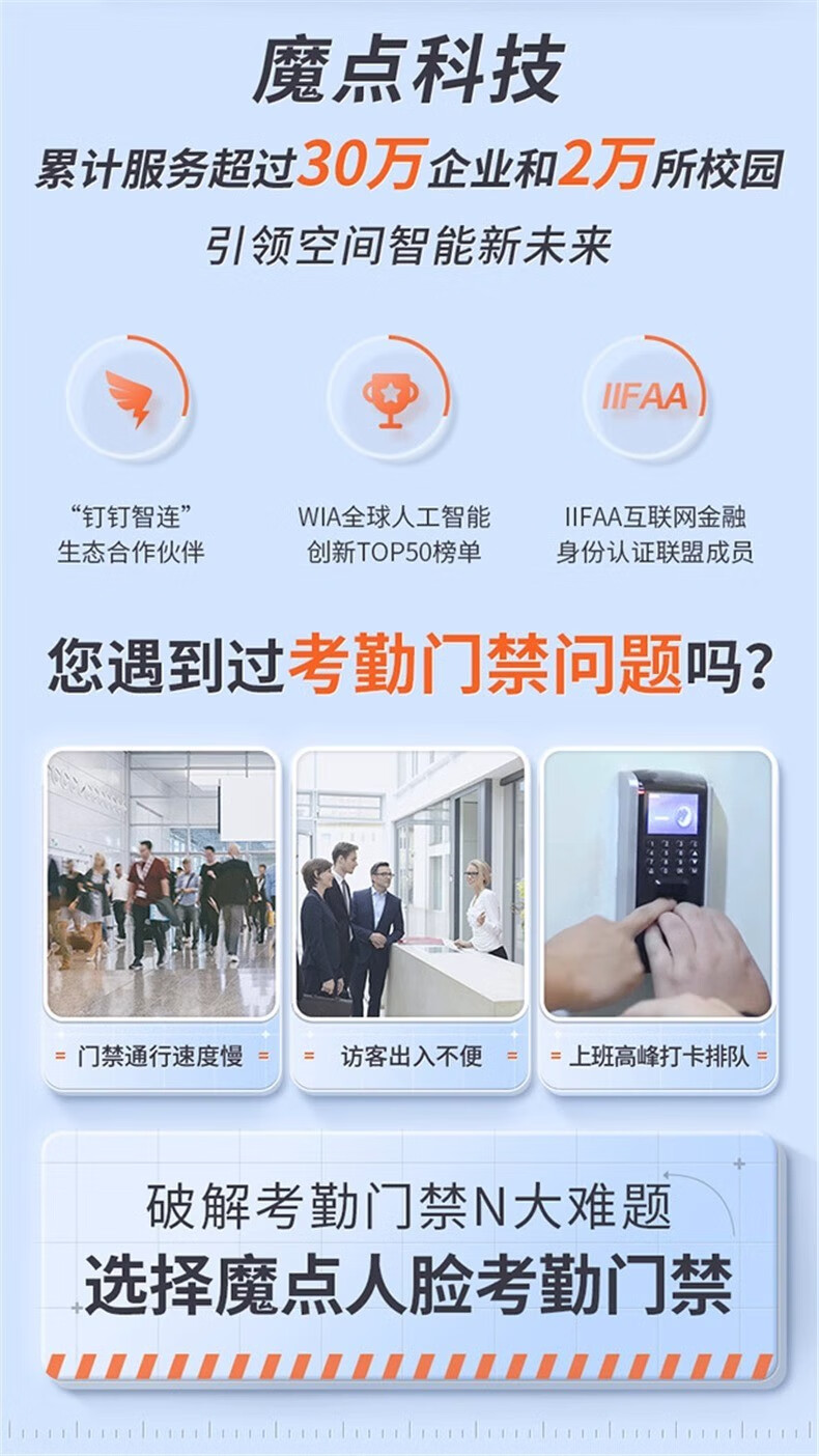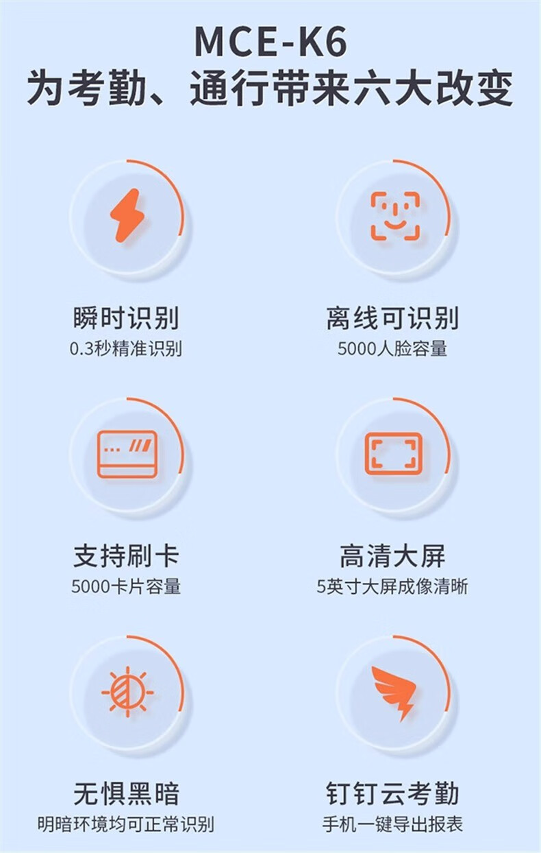 魔点MCE-K6智能考勤门禁一体面部识别门禁上班打卡签到5000张人脸 黑色