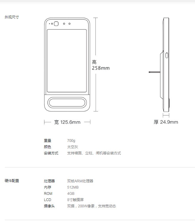 钉钉MY3魔点智能人脸 考勤门禁机打卡智联户外防水室外人脸识别活体红外双摄 魔点MY3官方标配【主机】