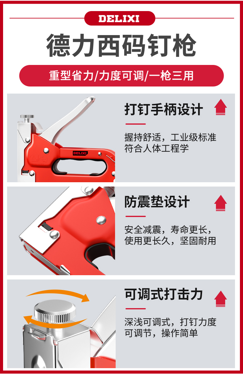 德力西射钉枪三用码钉枪手动打钉枪木工门型钉子气钉枪 码钉枪+三款钉型(各3000枚)+起钉器