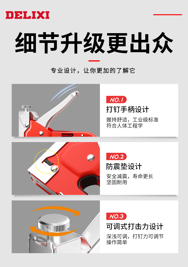 德力西射钉枪三用码钉枪手动打钉枪木工门型钉子气钉枪 码钉枪+门型钉1000枚+起钉器