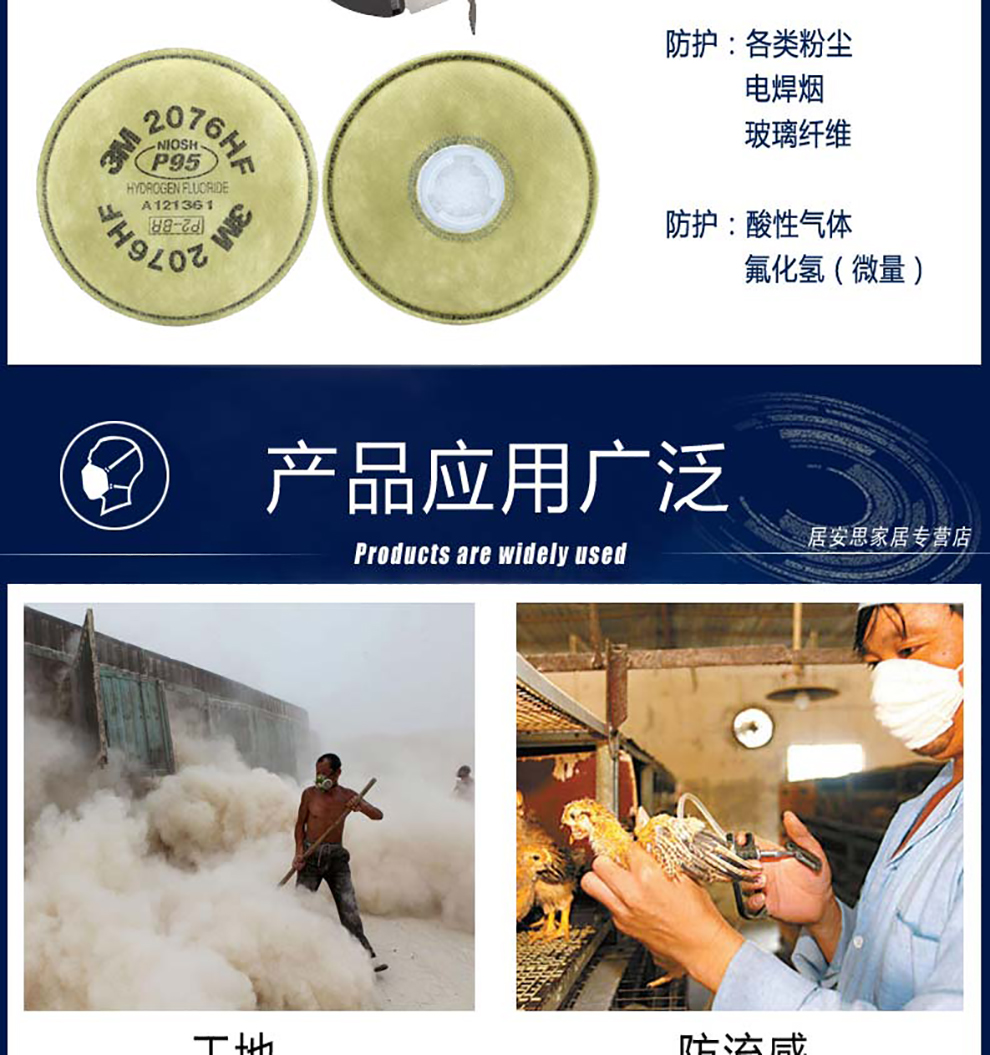 3M 6200防尘面具6100防颗粒物2091 2096 2097防酸性气味有机气体口罩 中码6200配2076防尘面具
