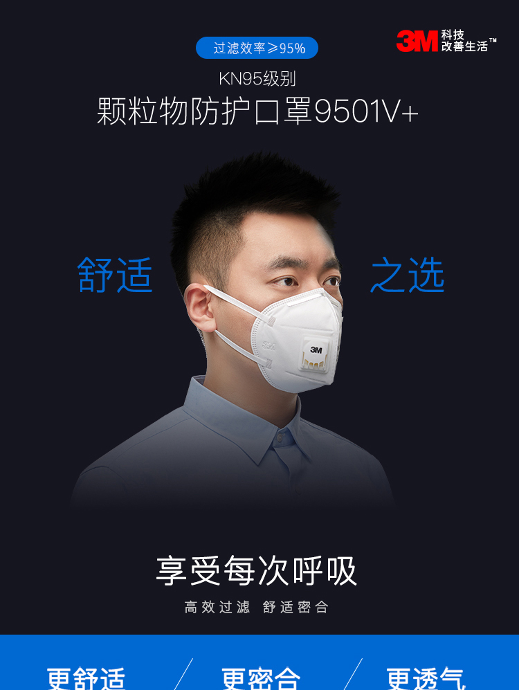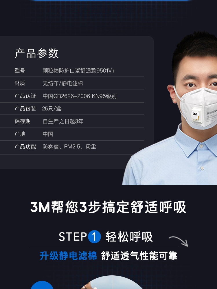 3m口罩9501v防尘透气防工业粉尘一次性K N95折叠式口罩防雾霾囗覃 KN95级带阀25只/袋头带9502V+环保装舒适针织带