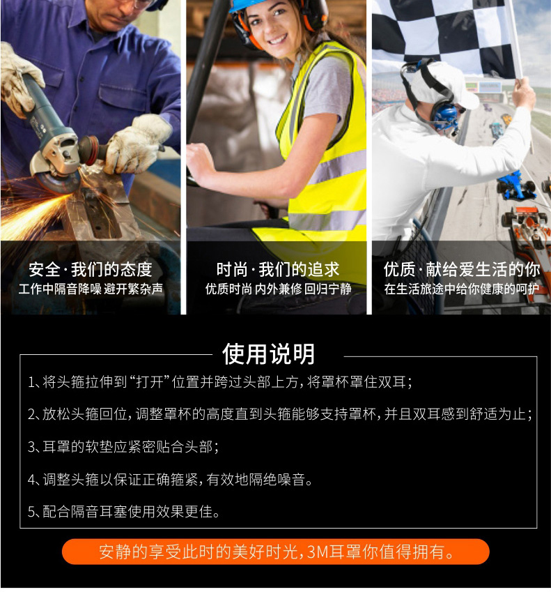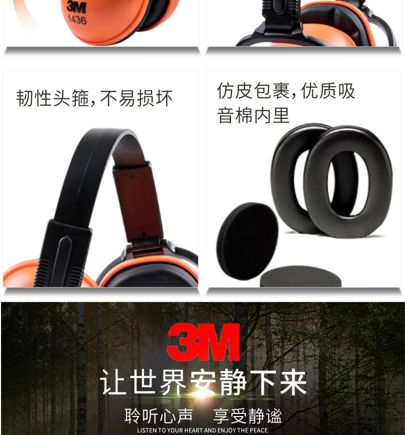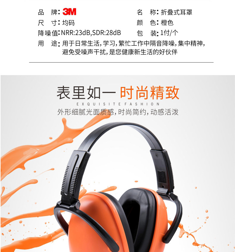 3M 1436折叠式隔音耳罩 防噪音射击 防噪声工业防护耳罩 学习飞行出差休息舒适耳罩