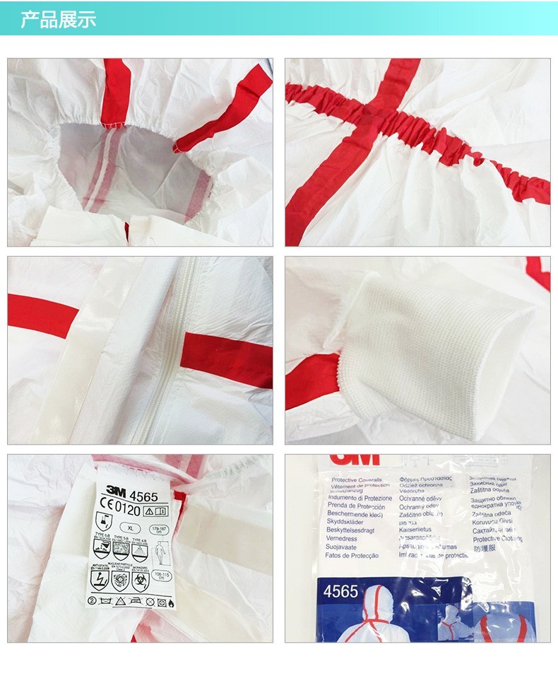 3M连体带帽防尘防疫工作4565yzl防护服日常防护口罩 M