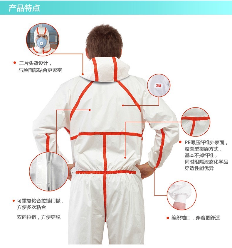 3M连体带帽防尘防疫工作4565yzl防护服日常防护口罩 XL