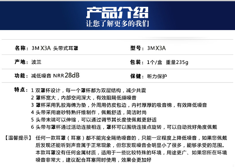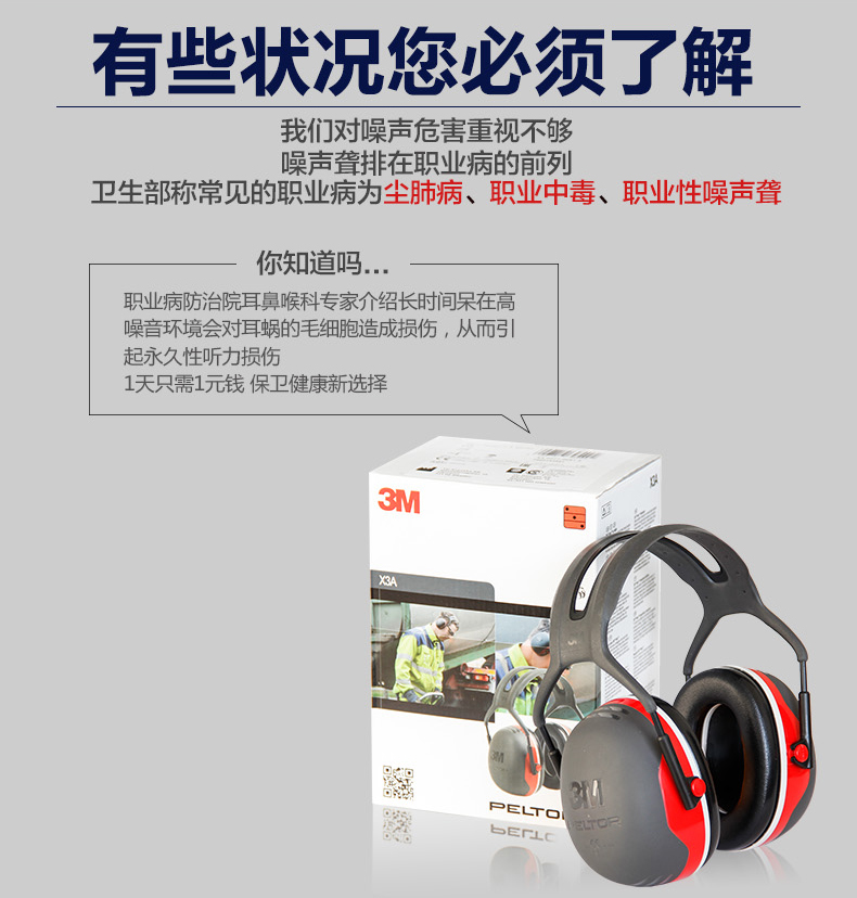 3M 隔音耳罩防噪音降噪睡眠用学习工作射击睡觉舒适型耳罩 默认颜色